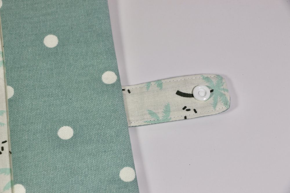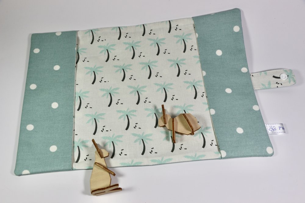 Joli protège carnet de santé en coton enduit, doublé de coton imprimé "petits palmiers".