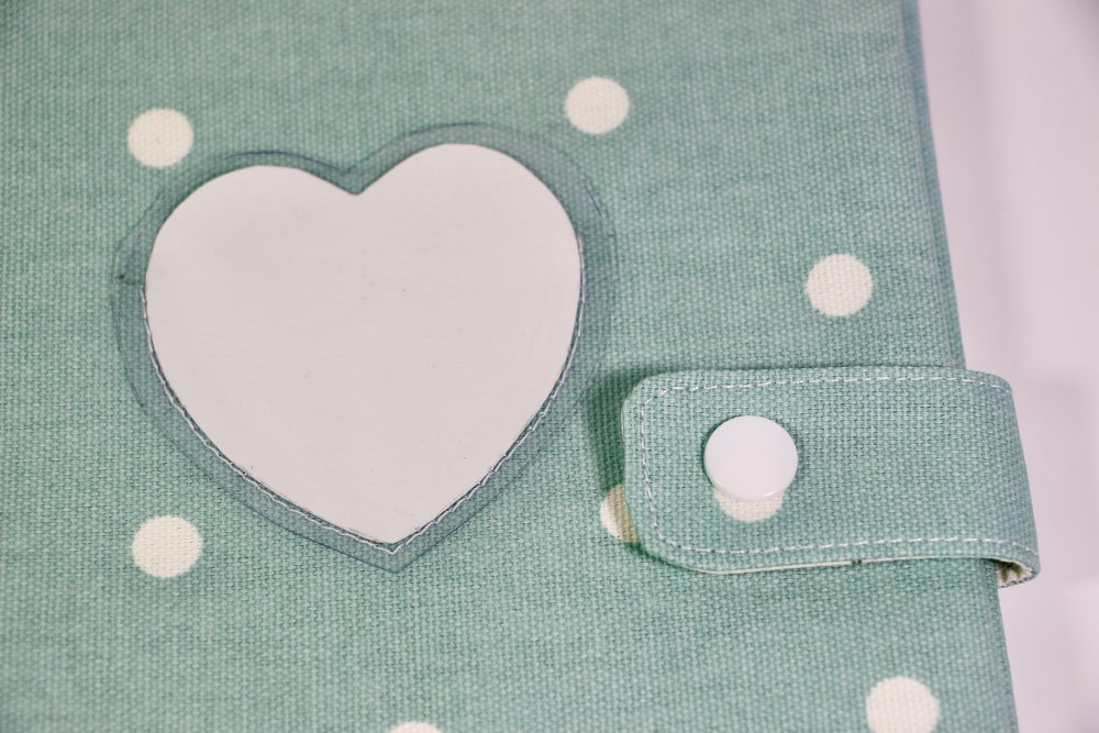 Un coeur est glissé dans une fenêtre en plastic pour écrire le prénom de votre enfant ainsi que sa date de naissance.