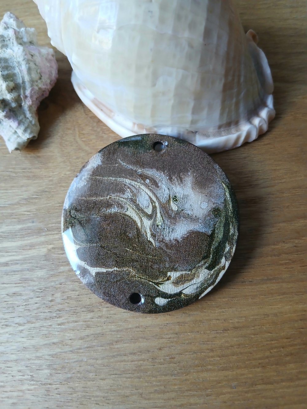 Grand sequin connecteur fait main pour créations bijoux,support bois de 55 mm ,poncé,peint et resiner en couches épaisses pour un effet optimal au fini brillant