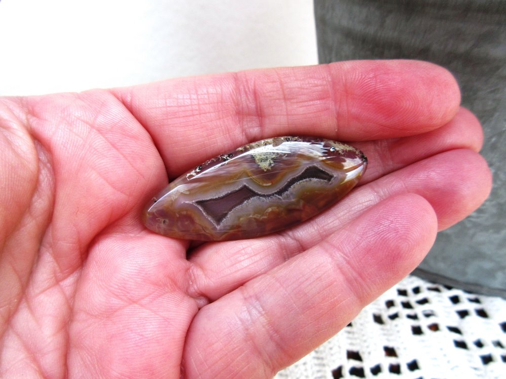 Un splendie cabochon d’agate agua nueva : pierre de designer , 47mm x 18 mm pour la confection de bijoux