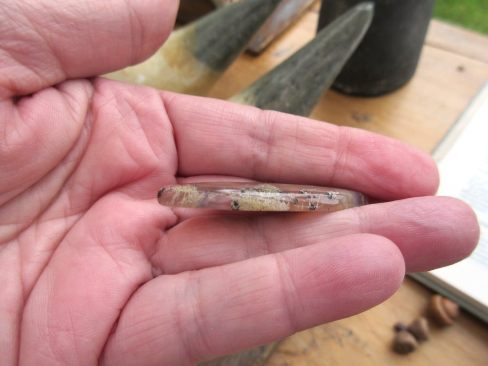 Les deux côtés sont polis et tout aussi beaux. Il est très rare de trouver un spécimen aussi agréable dans ce matériau rare. Un beau dôme et dos plat.