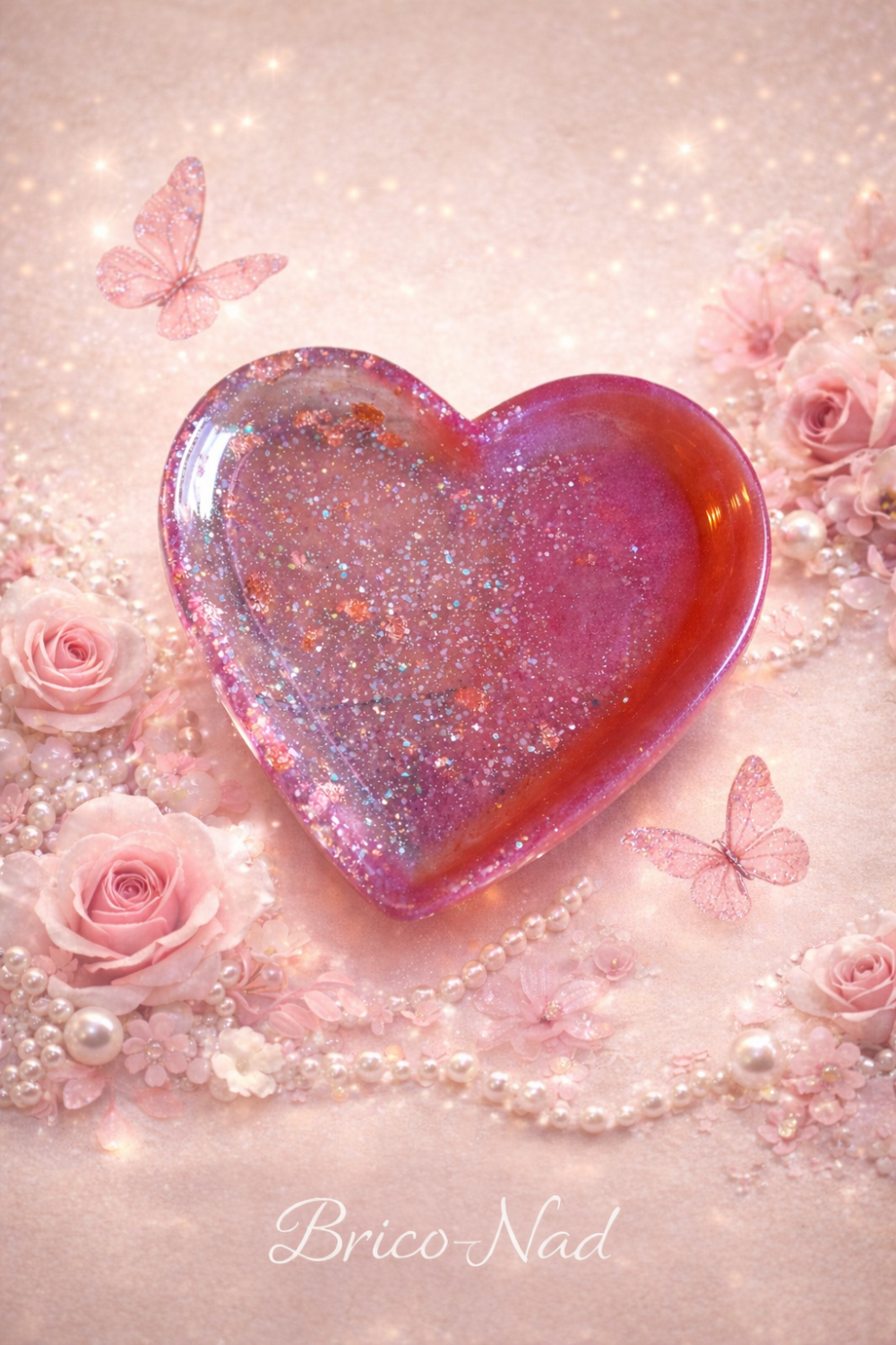 Apportez une touche de douceur et d’élégance à votre intérieur avec ce vide-poche en forme de cœur, entièrement réalisé à la main en résine.