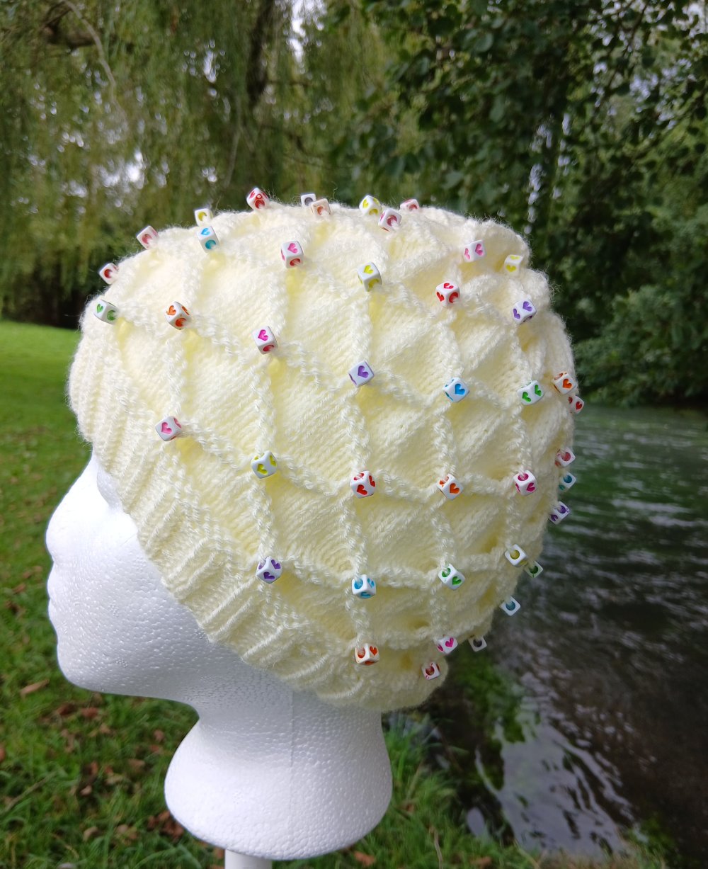 Bonnet au tricot et ses perles