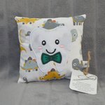 Craquez pour ce joli coussin à dent de lait (environ 15x15 cm), idéal pour accompagner la venue de la petite souris ou de la fée des dents.