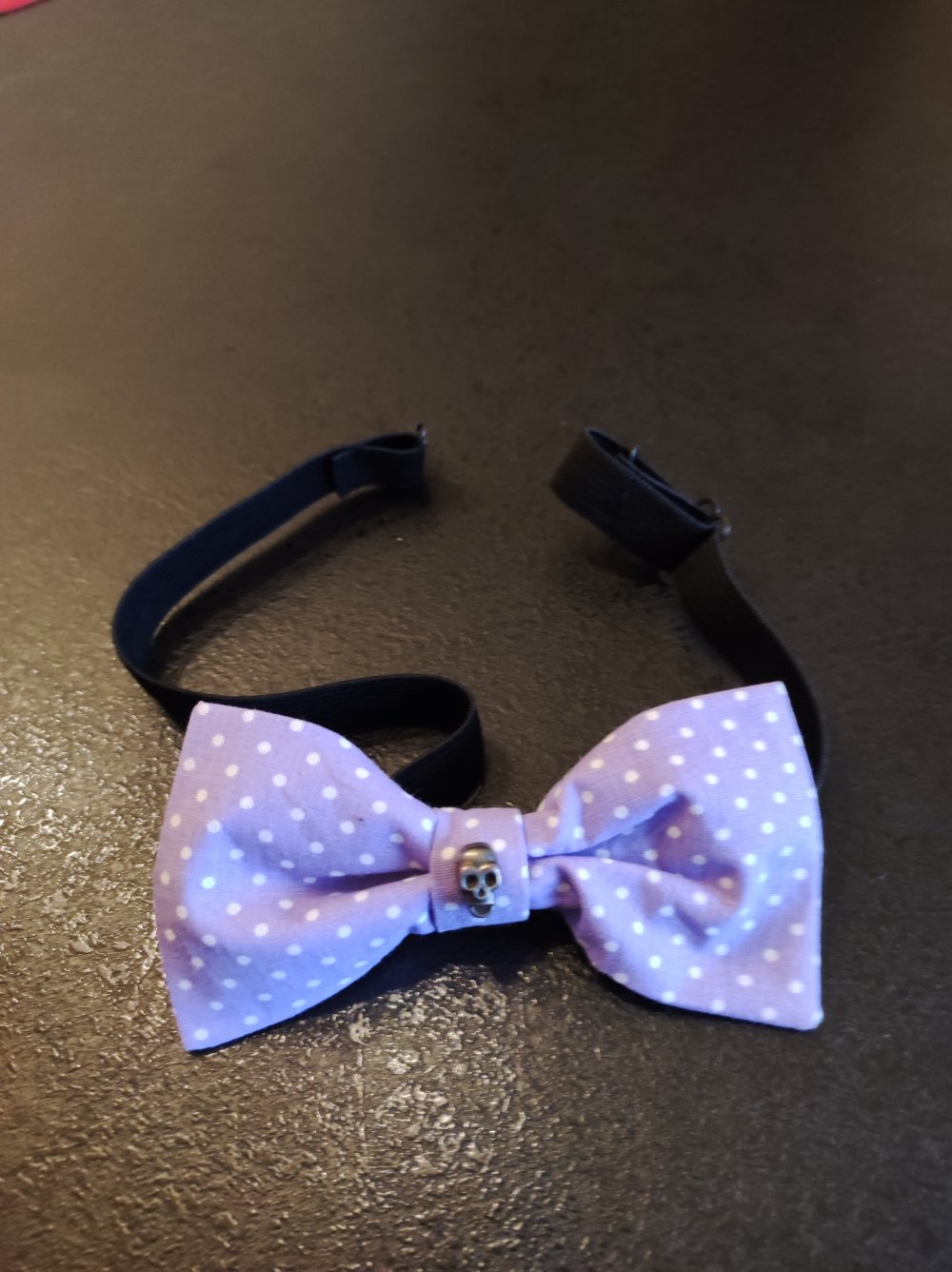 Noeud papillon en tissu 100% coton violet et pois blancs