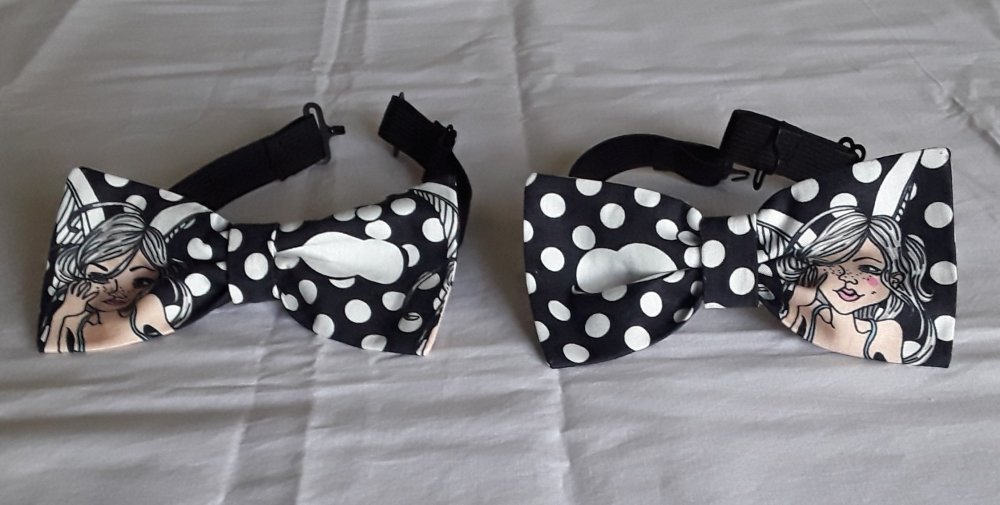Noeud papillon en tissu 100% coton noir à pois blanc et motif enfant