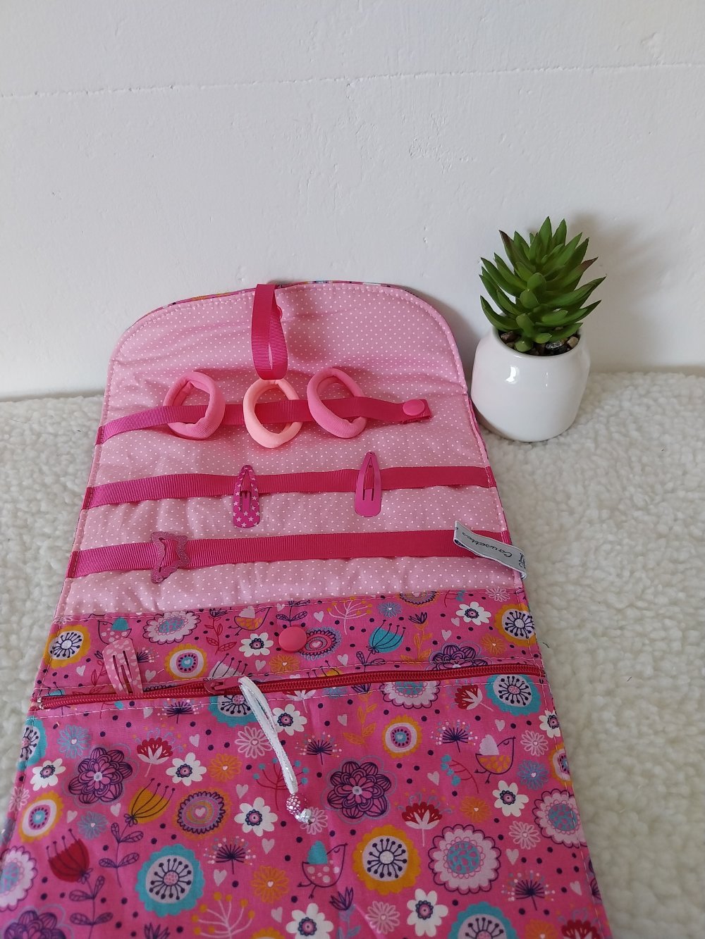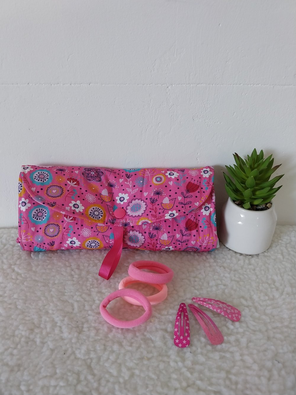 Une pochette molletonnée girly pour ranger les chouchous, barrettes, pinces de vos princesses .... Ou pour les adultes aussi.....