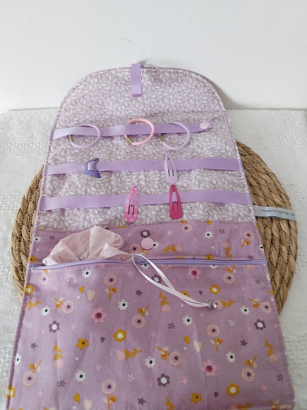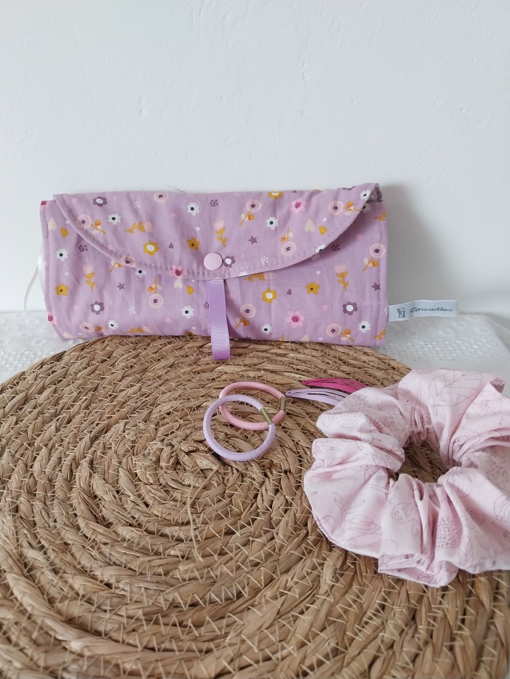 Une pochette molletonnée girly pour ranger les chouchous, barrettes, pinces de vos princesses .... Ou pour les adultes aussi.....