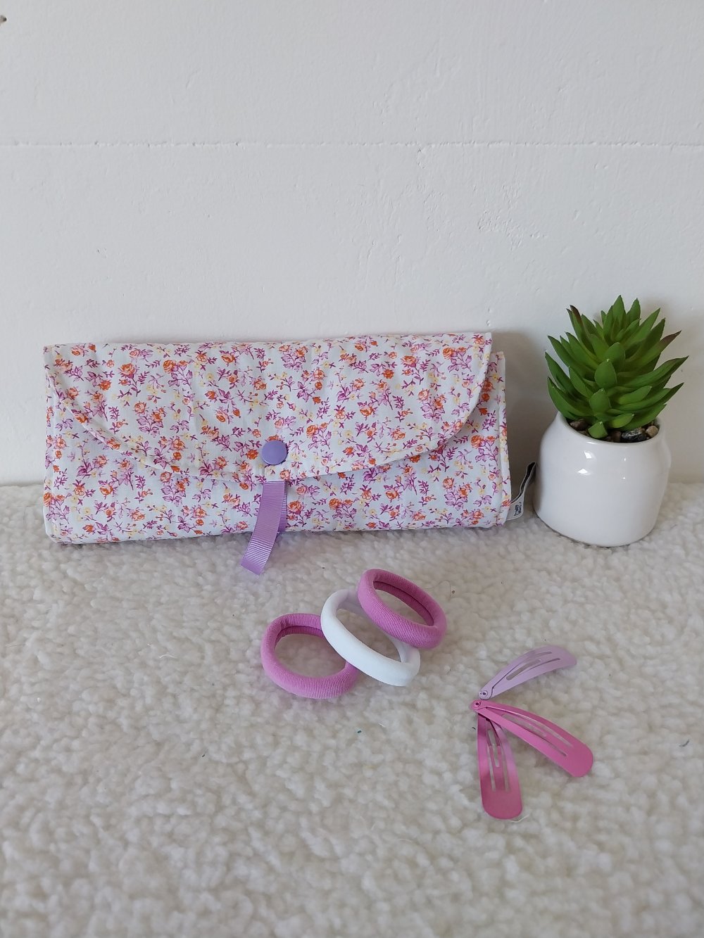 Une pochette molletonnée girly pour ranger les chouchous, barrettes, pinces de vos princesses .... Ou pour les adultes aussi.....