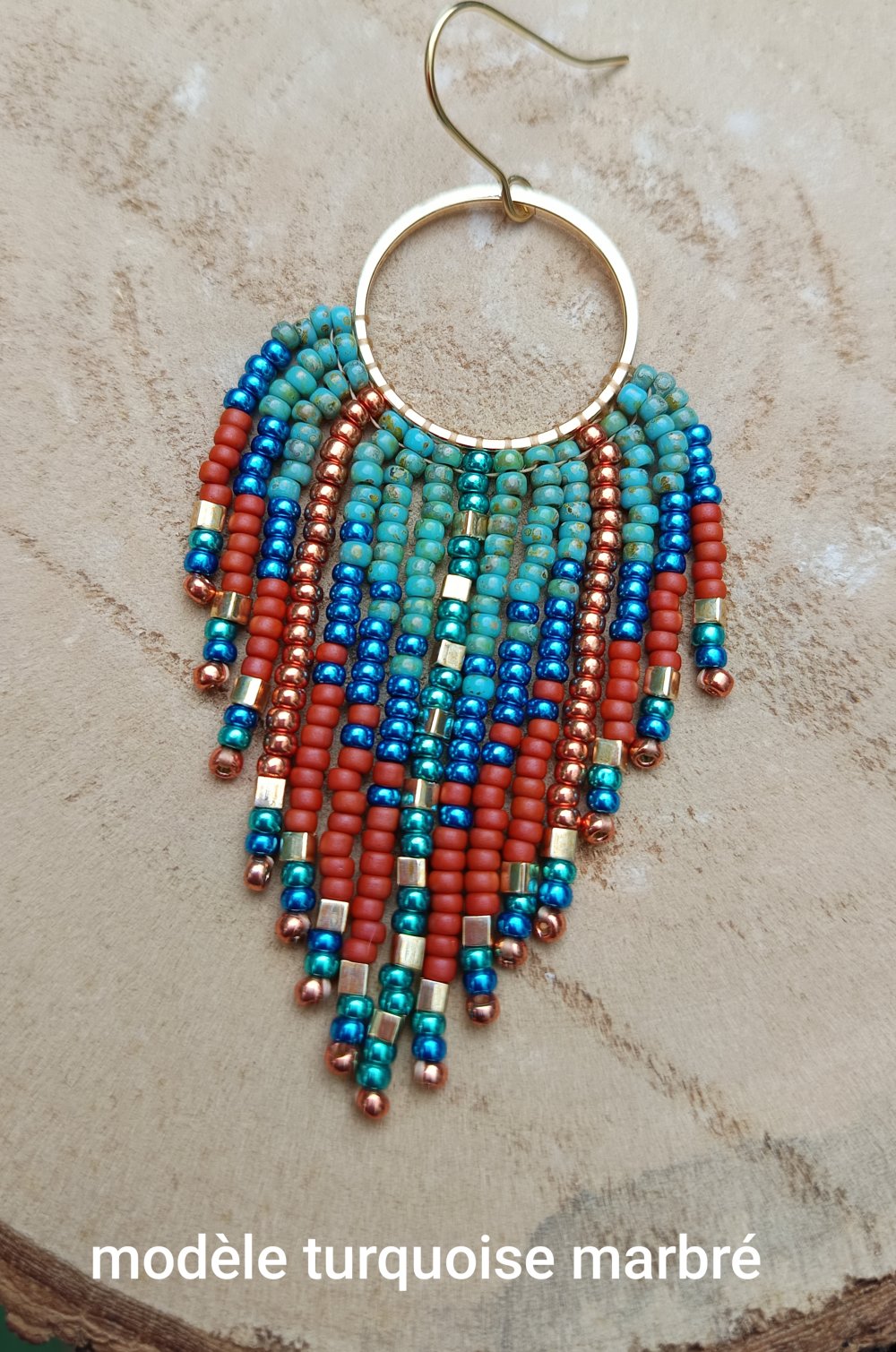 Boucles d'oreilles tissées à frange en perles de rocailles Miyuki.