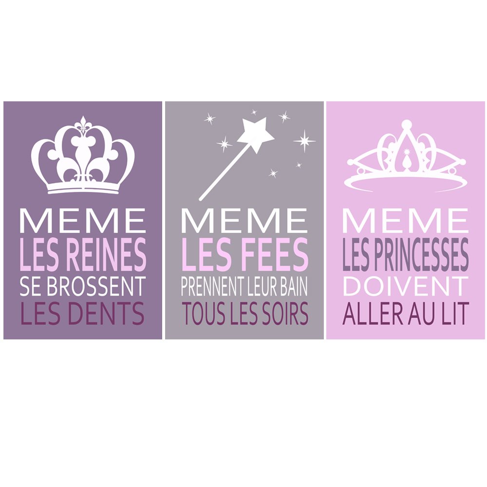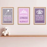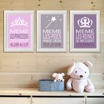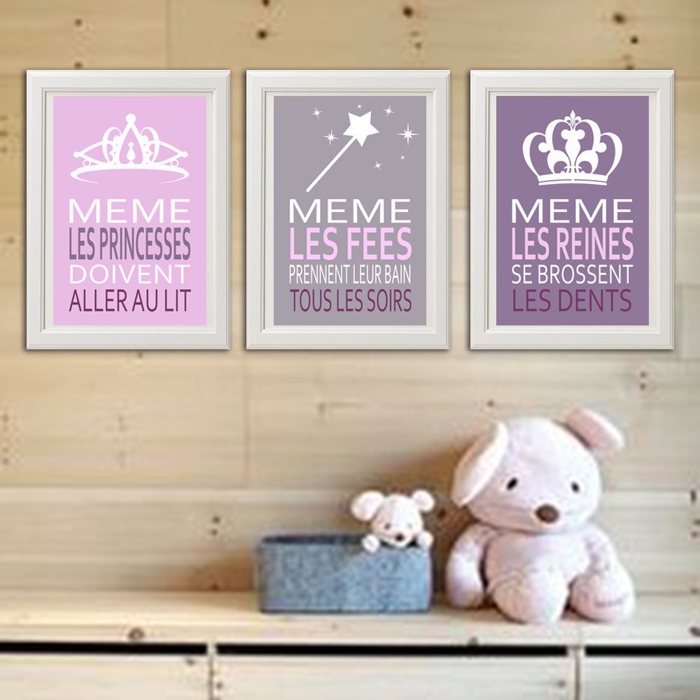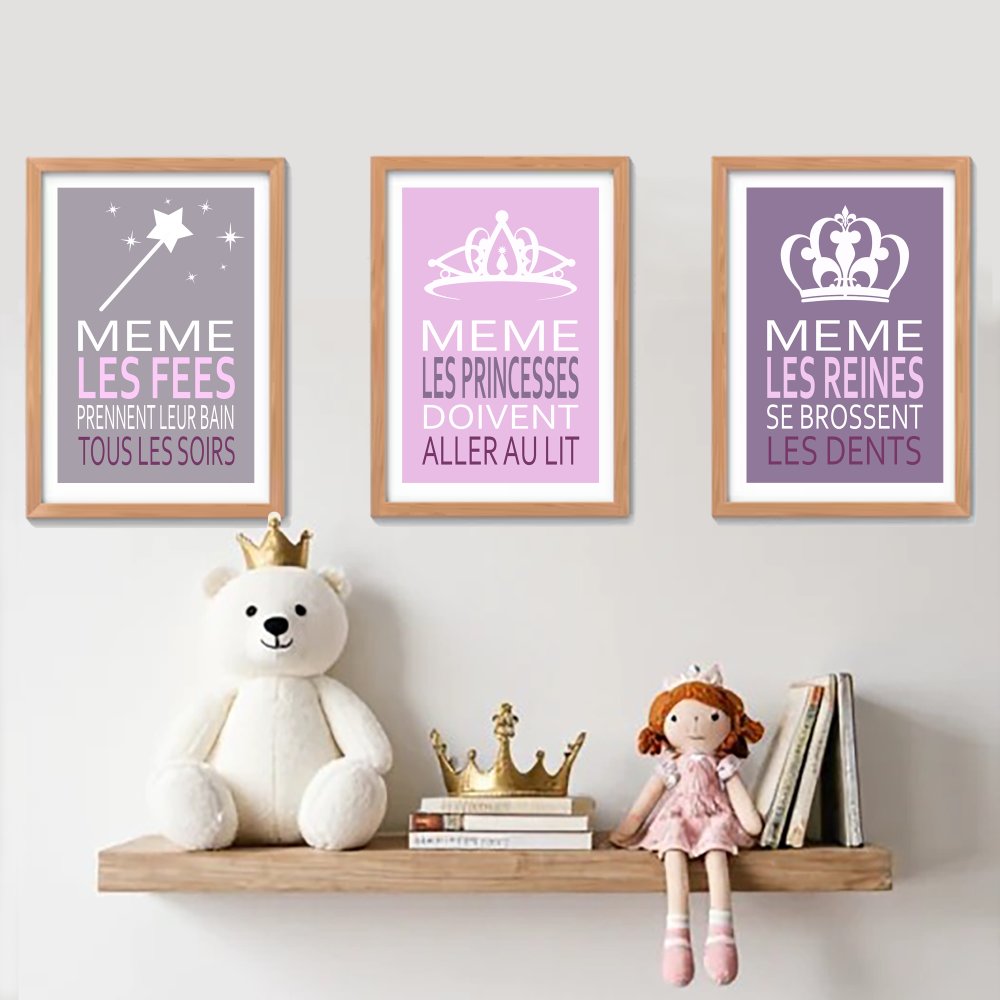 3 affiches humoristiques pour les enfants qui seront heureux de faire comme les princesses, fées et reines!! Décoration de chambre de fille originale et douce