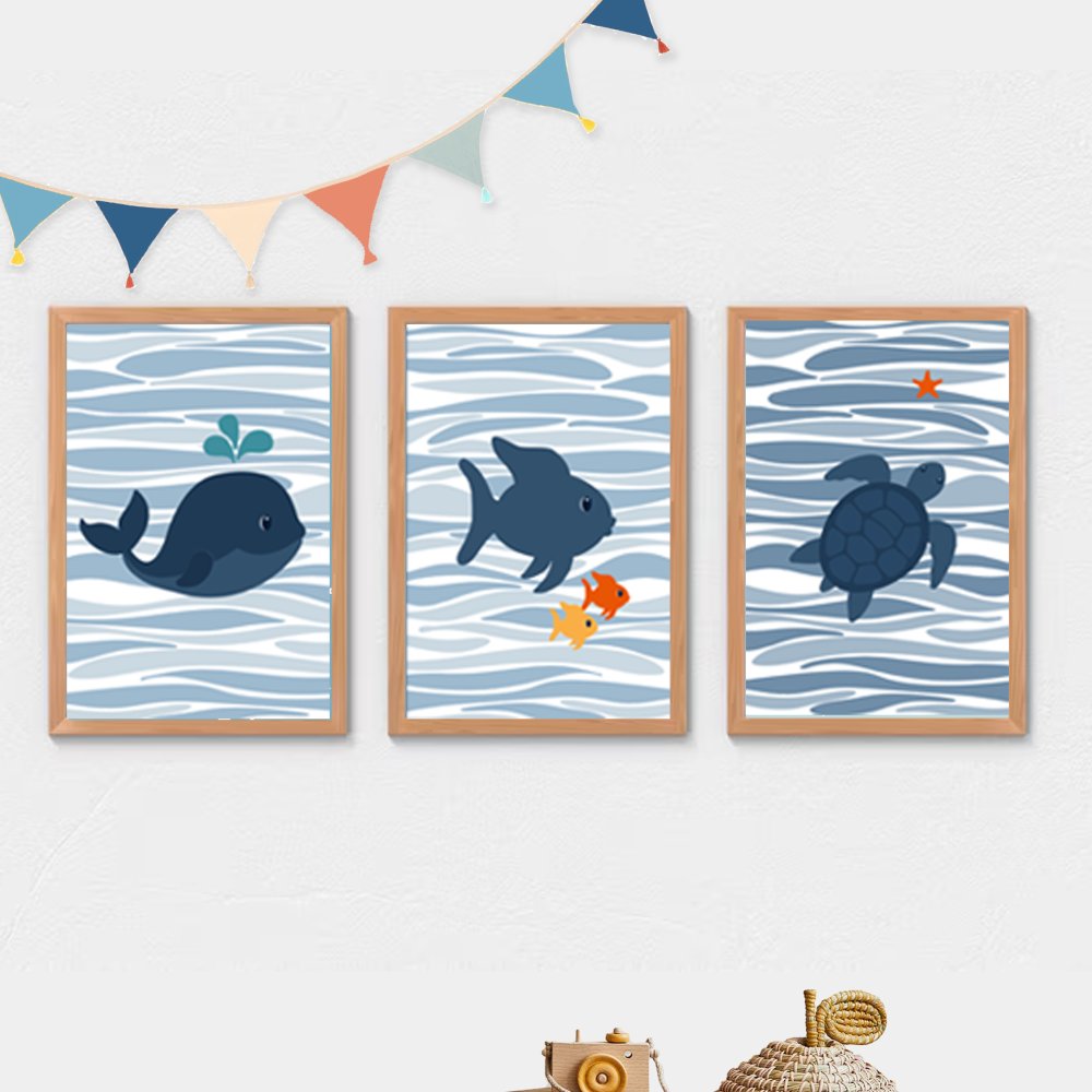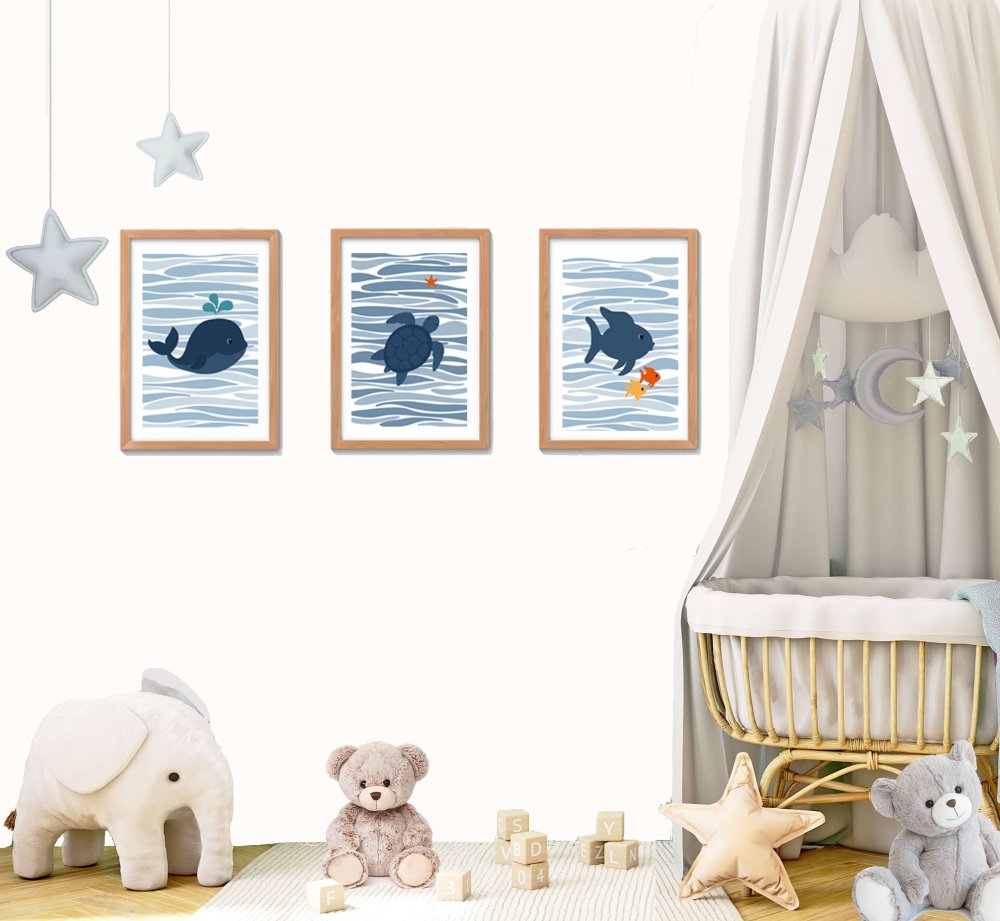 lot de 3 posters marins Décoration murale douce et poétique chambre enfant, , style minimaliste