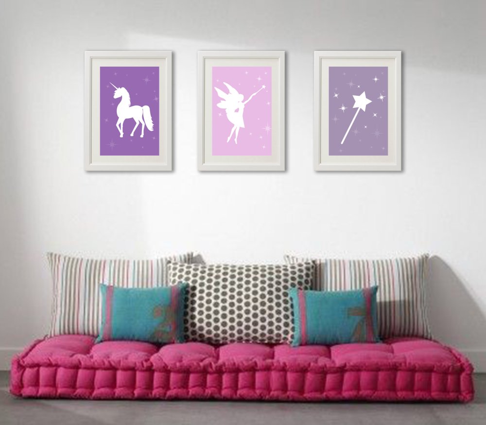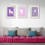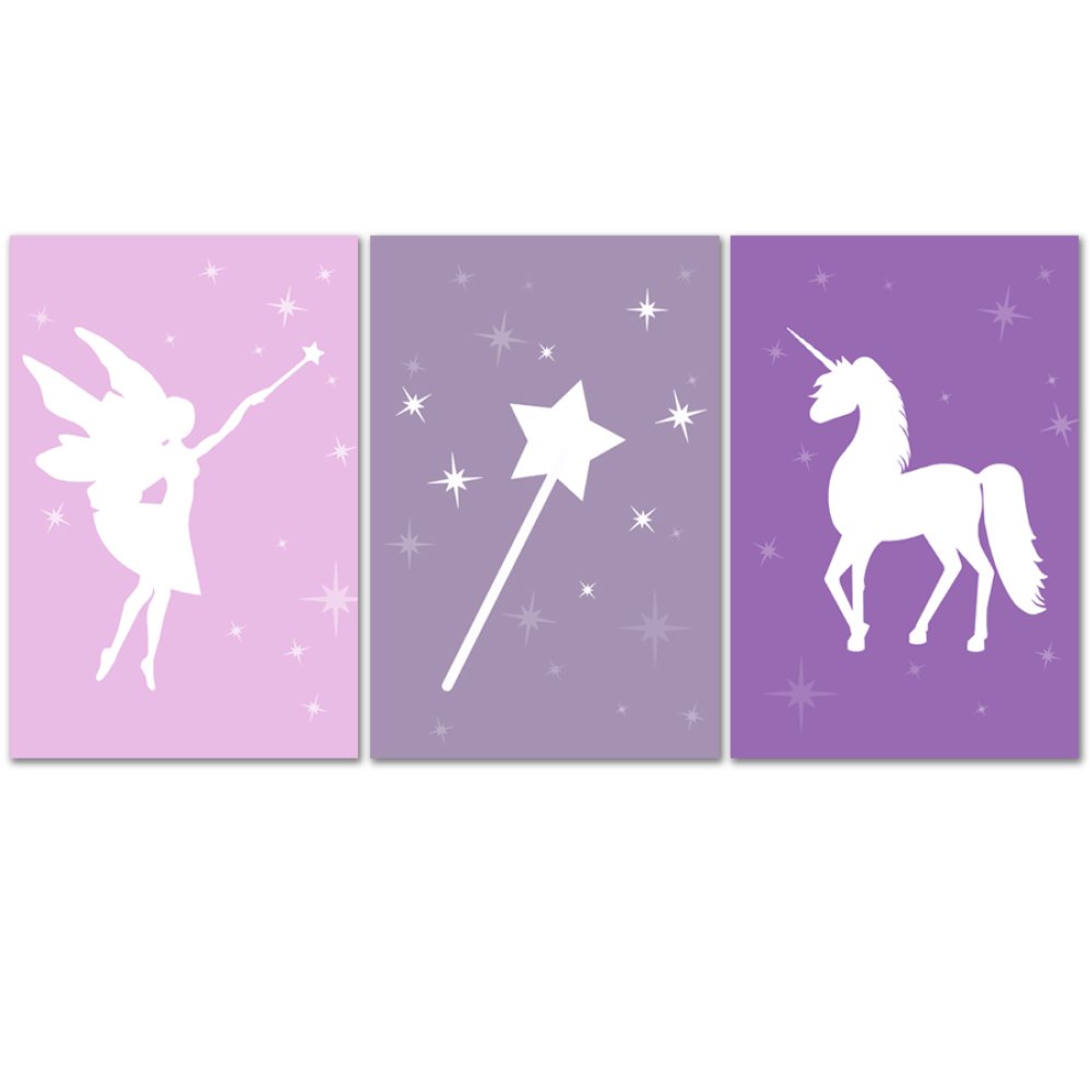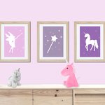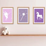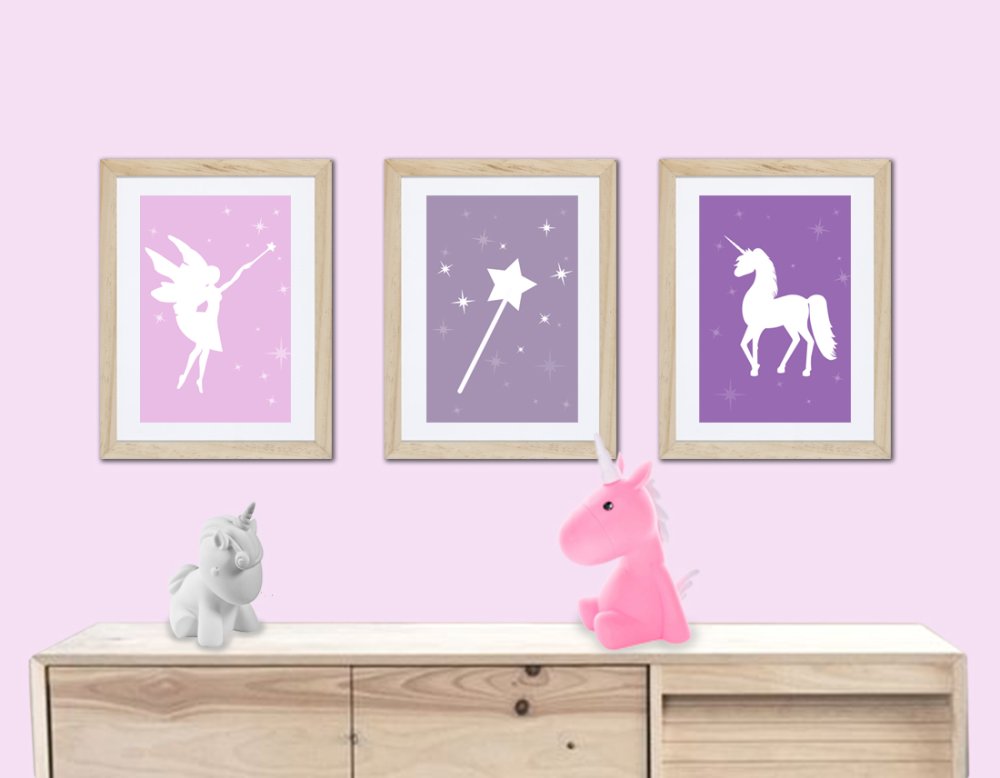 3 affiches assorties avec une fée, une licorne, une baguette magique, pour une ambiance douce et moderne