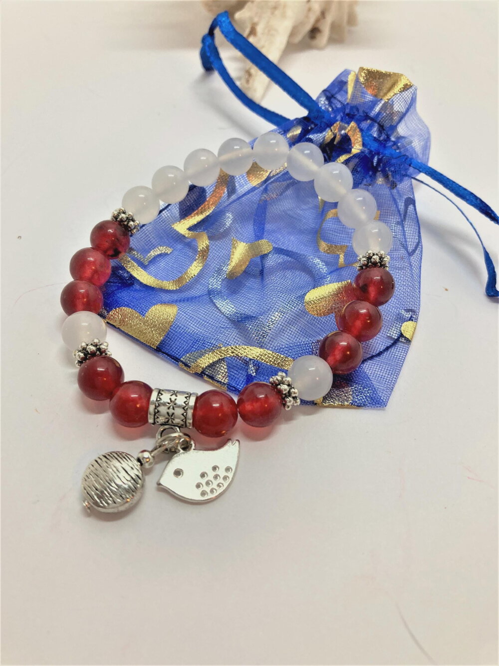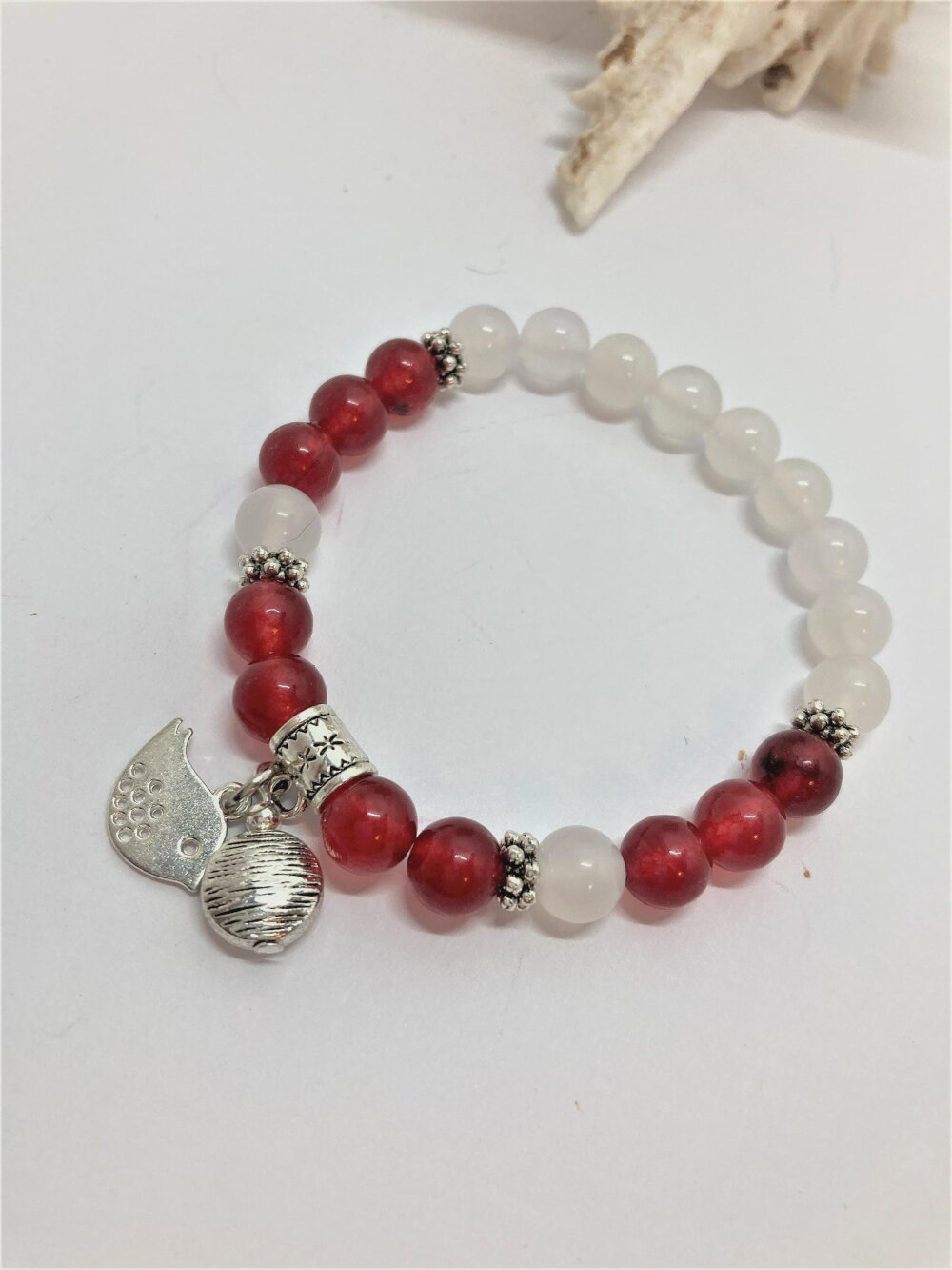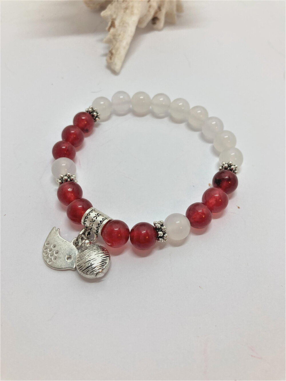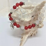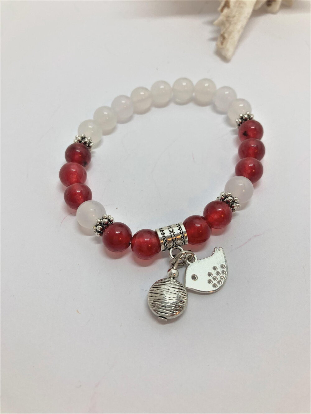Agate rouge, agate blanche, pour ce joli bracelet très tendance. Bijou femme.