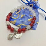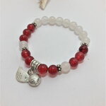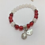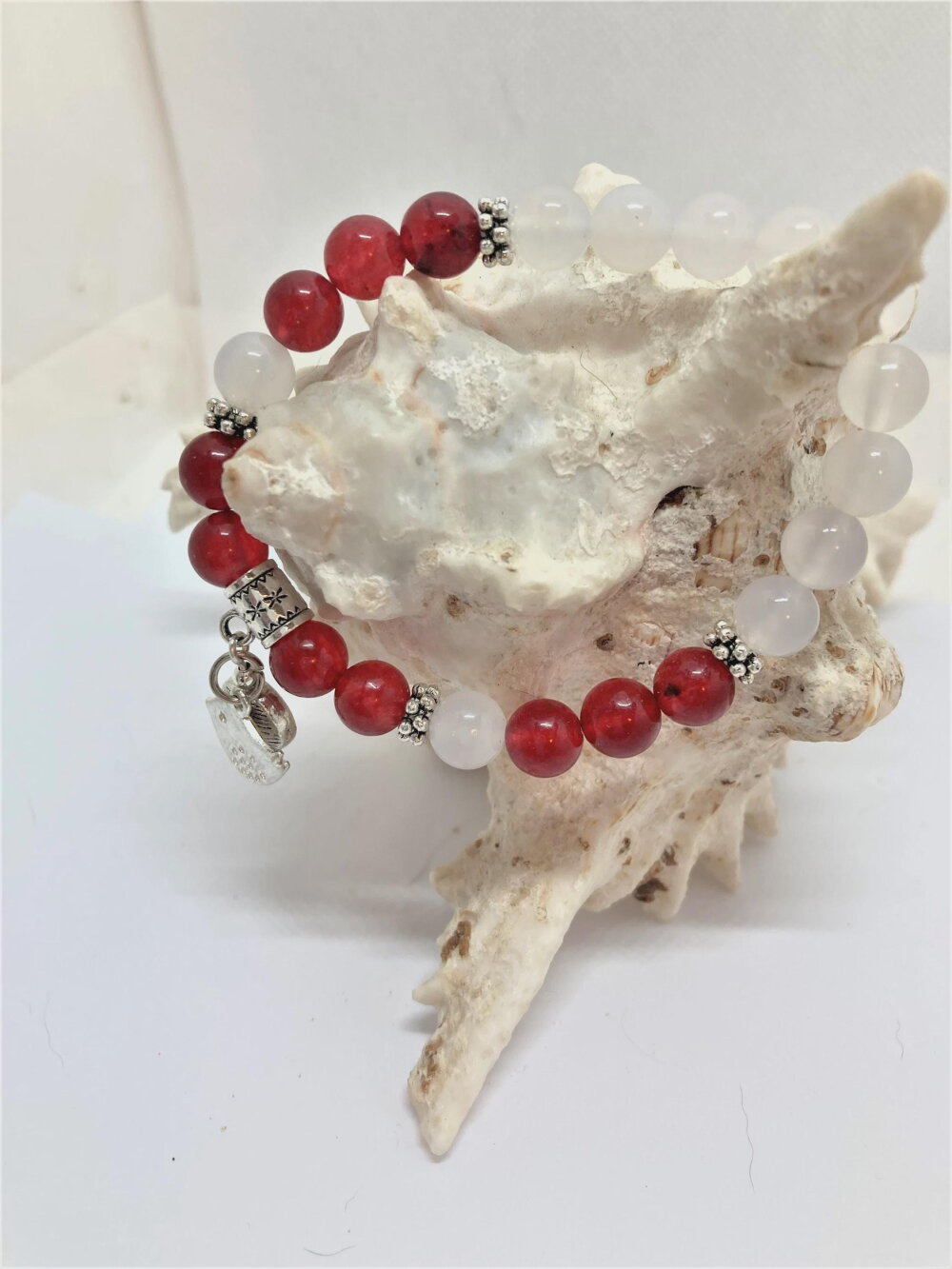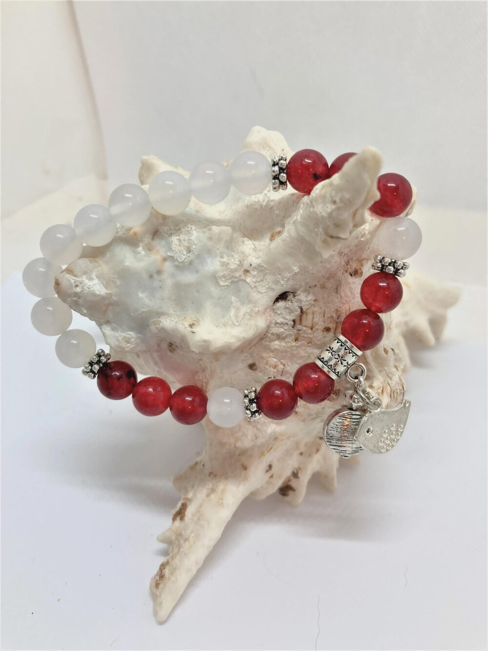 Agate rouge agate blanche bracelet tendance de 16 à 19 cm perles de 8mm avec breloques Bijou femme