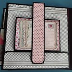 J'ai utilisé les papiers Stampéria. Il mesure 21,5x22,5 cm avec une tranche de 8 cm.
