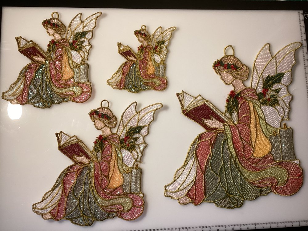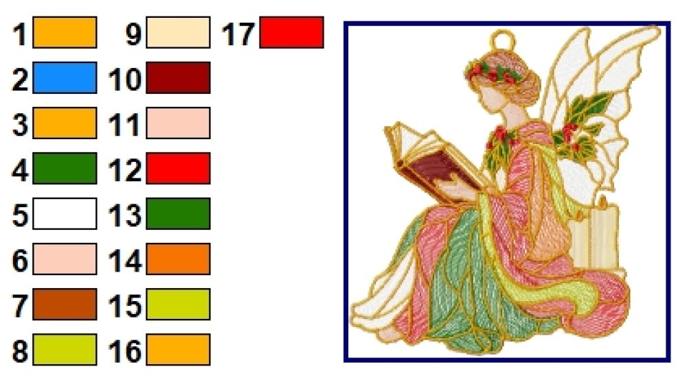 fichier pour machine à broder ;ce motif est à broder avec un stabilisateur hydrosoluble et du tissus fin ici j'ai utilisé de l'organza , vous brodez la première séquence directement sur le stabilisateur hydrosoluble puis vous scotchez votre tissu par dessus la forme toujours avec du fil couleur vieil or vous brodez la séquence 2 puis vous découpez le tissu au bord de la couture et à ce moment si vous voulez pour donner un effet pailleté vous pouvez scotcher une feuille de mylar puis brodez jusqu'à la séquence 15 inclue si vous avez mis du mylar retirer l'excédant et broder les séquences 16 et 17 . rincez et séchez