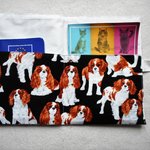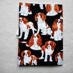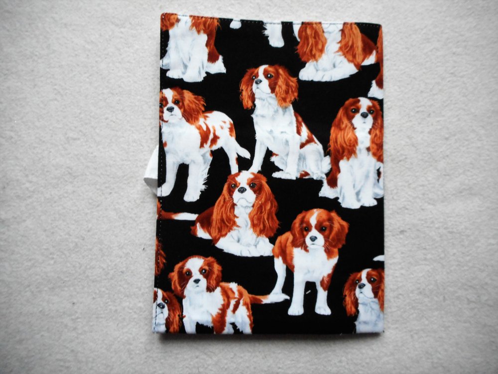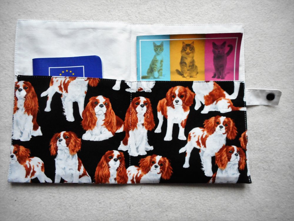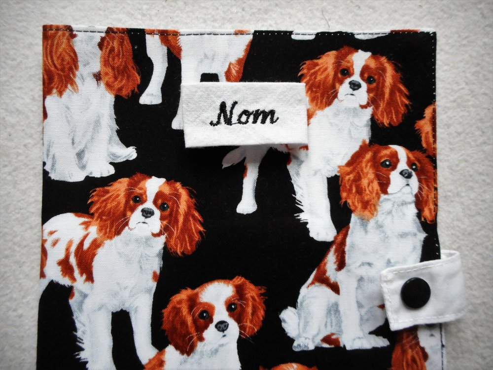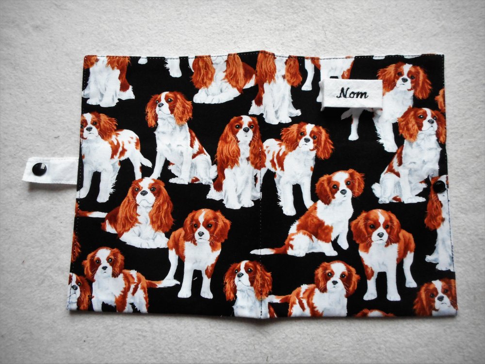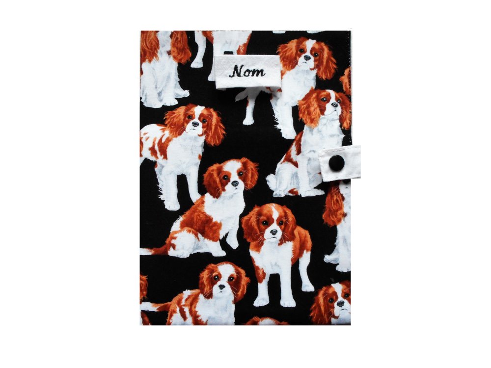 Couverture pour carnet de santé et/ou passeport pour chien, avec des cavaliers King Charles réalistes.