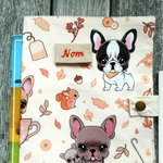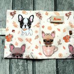 Quel bel imprimé, représentant d'adorables bouledogues français, dans un environnement automnal.