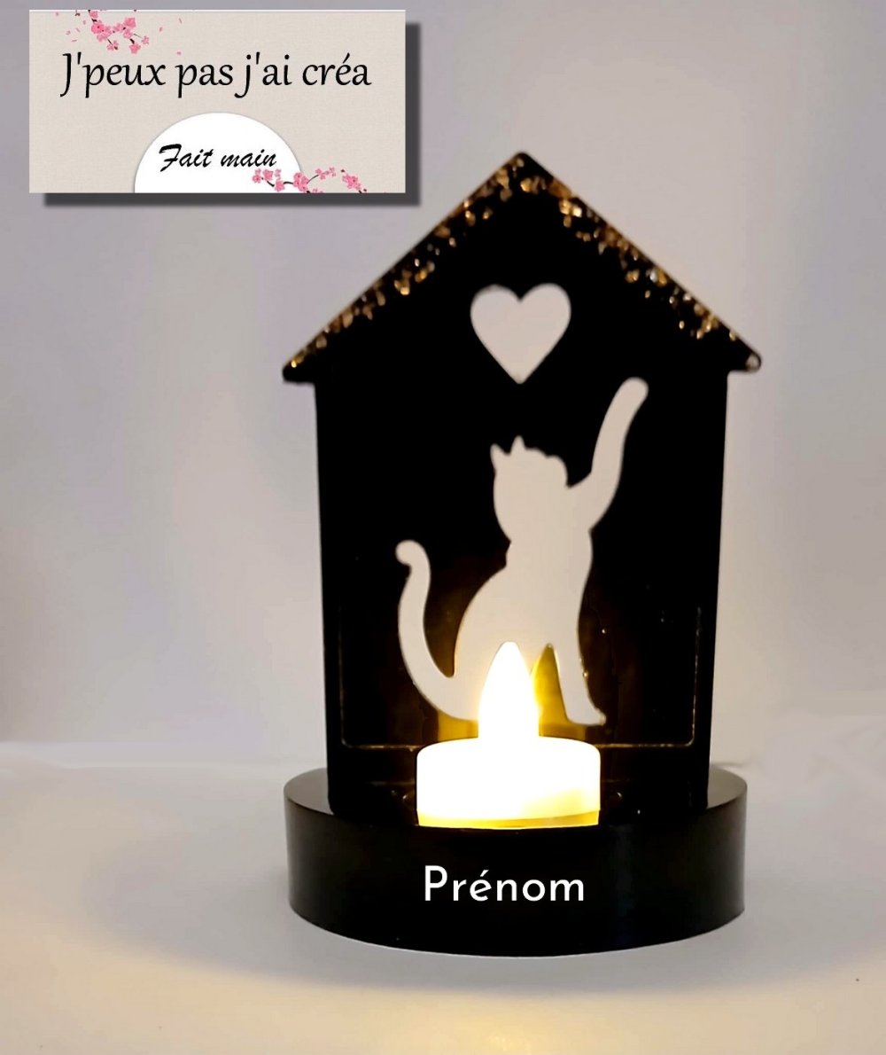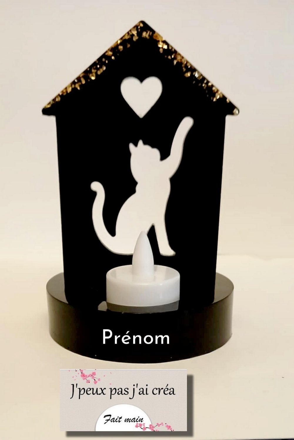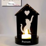 Plaque souvenir chat avec bougie led personnalisable au nom de votre animal