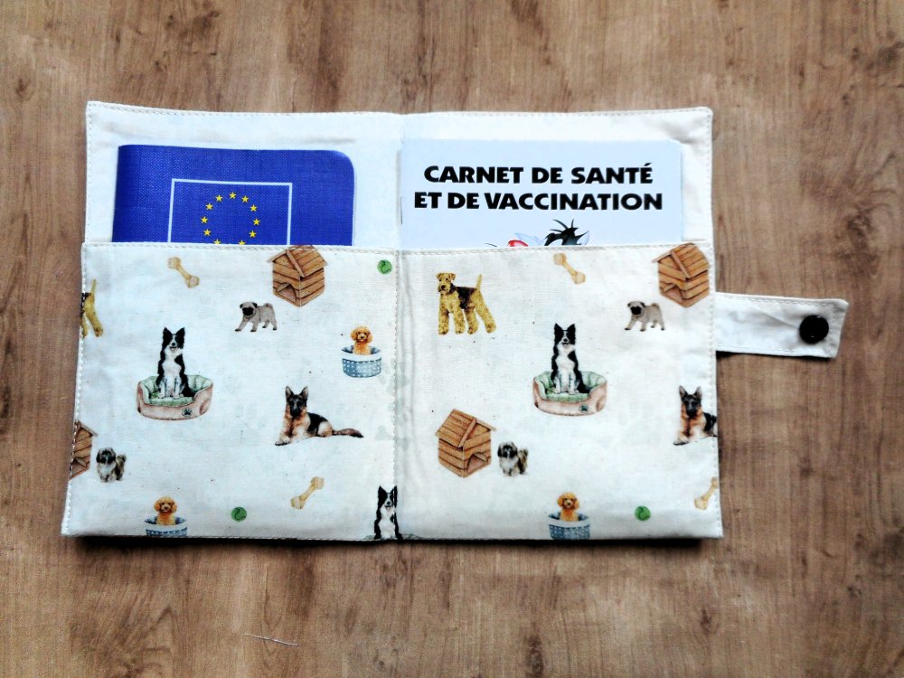 Protège carnet de santé et/ou housse de passeport pour chiens pour un carnet de santé français standard de 12 x 16 cm et/ou un passeport européen de 10 x 15.5 cm