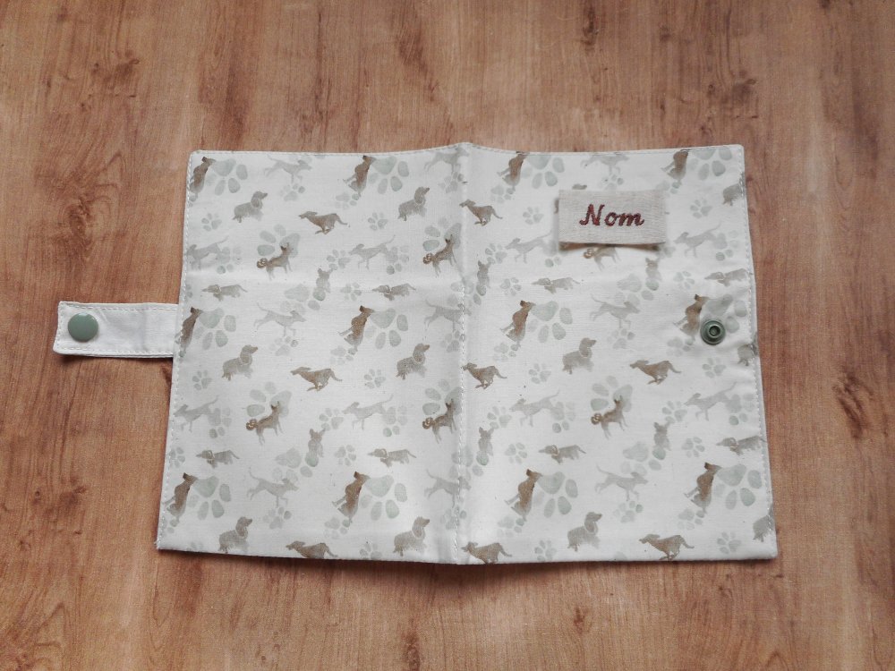 Protège carnet de santé pour chien, personnalisé avec le nom brodé