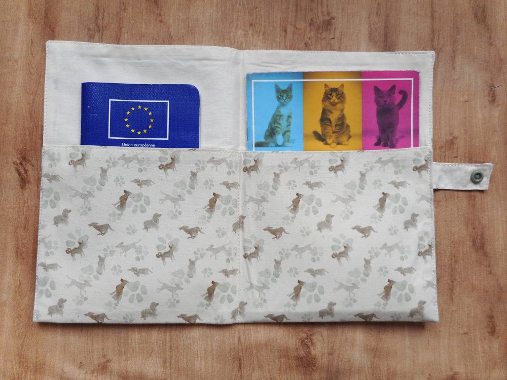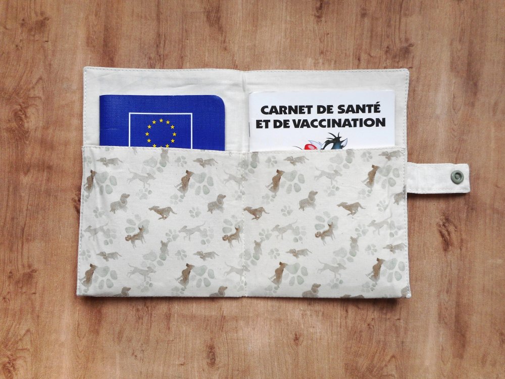Protège carnet de santé et/ou housse de passeport pour chiens pour un carnet de santé français standard de 12 x 16 cm et/ou un passeport européen de 10 x 15.5 cm