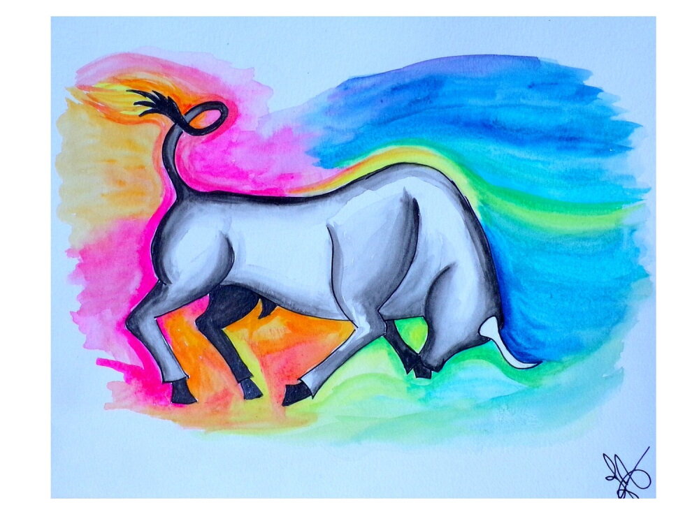 Aquarelle représentant un taureau camarguais sur papier aquarelle format a3 - 300 g