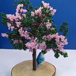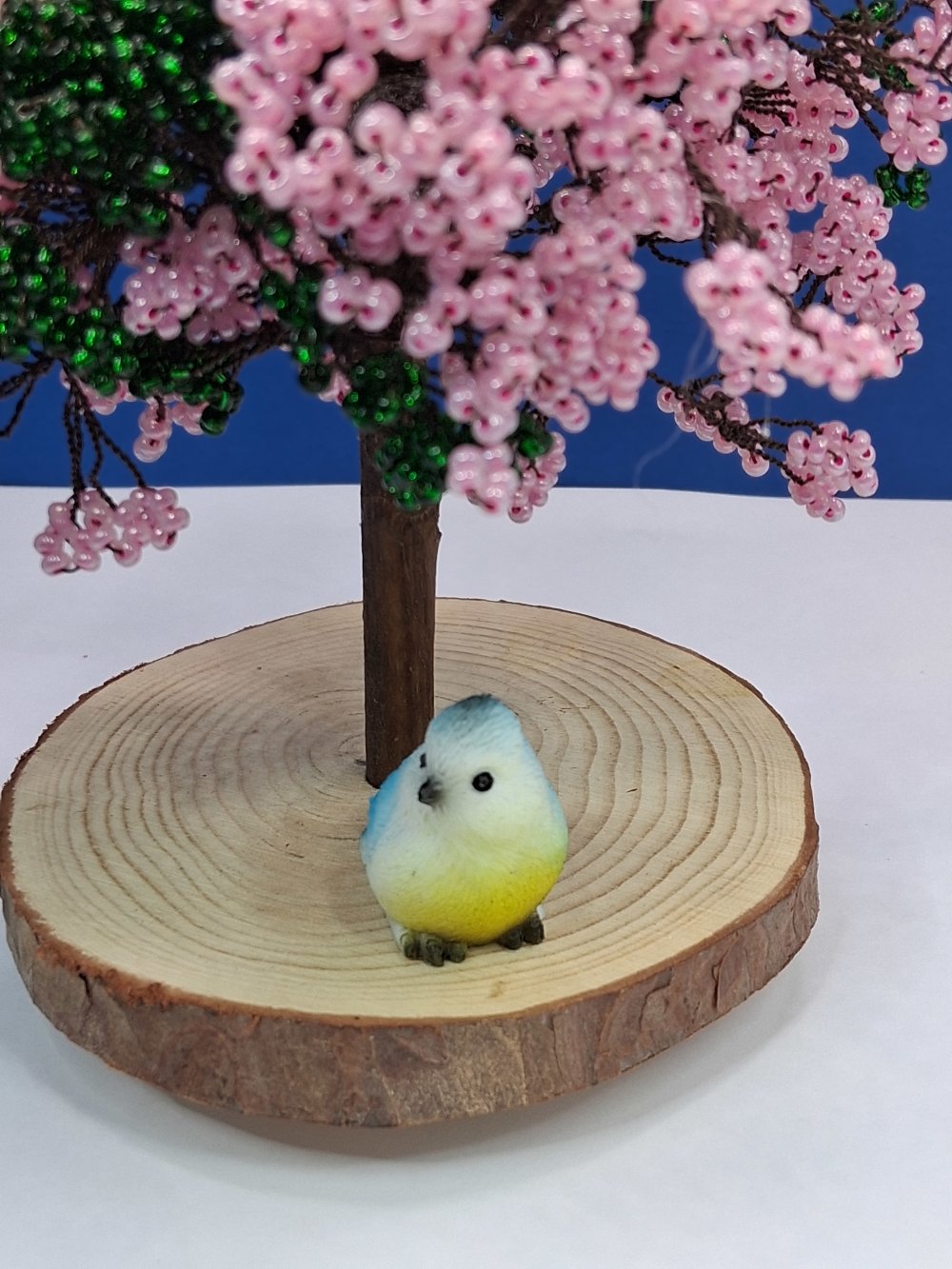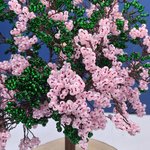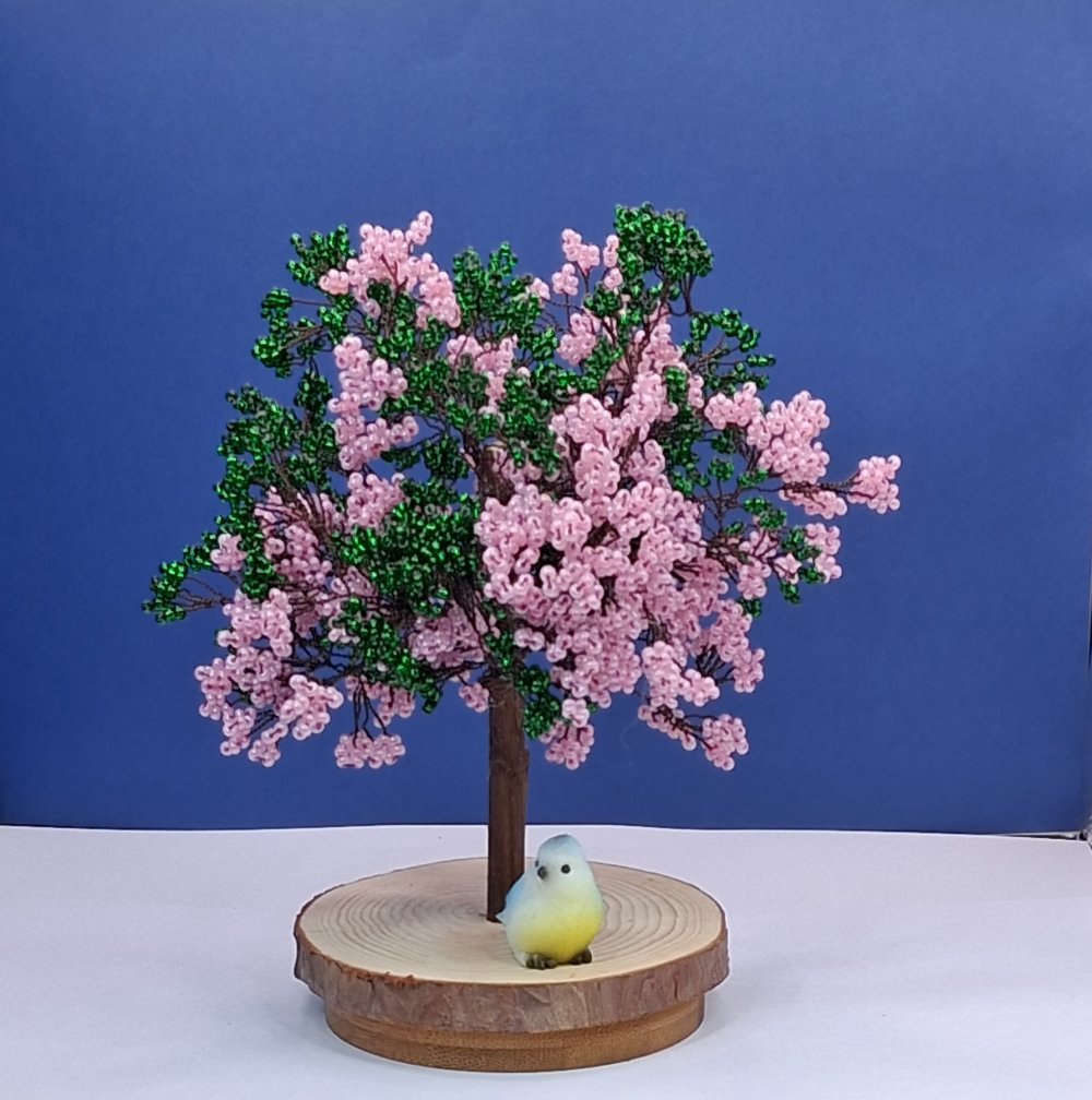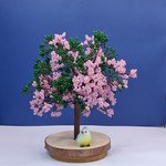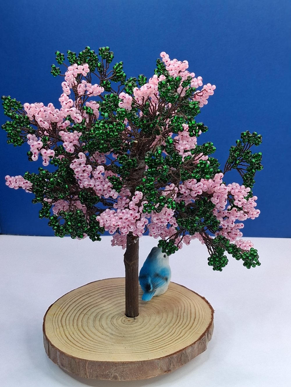 Entièrement réalisé à la main, cet arbre décoratif est confectionné avec soin à l’aide de perles de rocailles roses et vertes, enroulées sur du fil de cuivre fin.