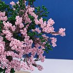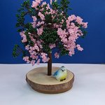 Son feuillage délicat évoque la légèreté des pétales, tandis que le tronc solide repose sur un socle en bois naturel.