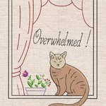 Motif de Chat assis à la fenêtre avec inscription Débordé en anglais pour Machine à Broder disponible en 6 Tailles et Multi Formats.