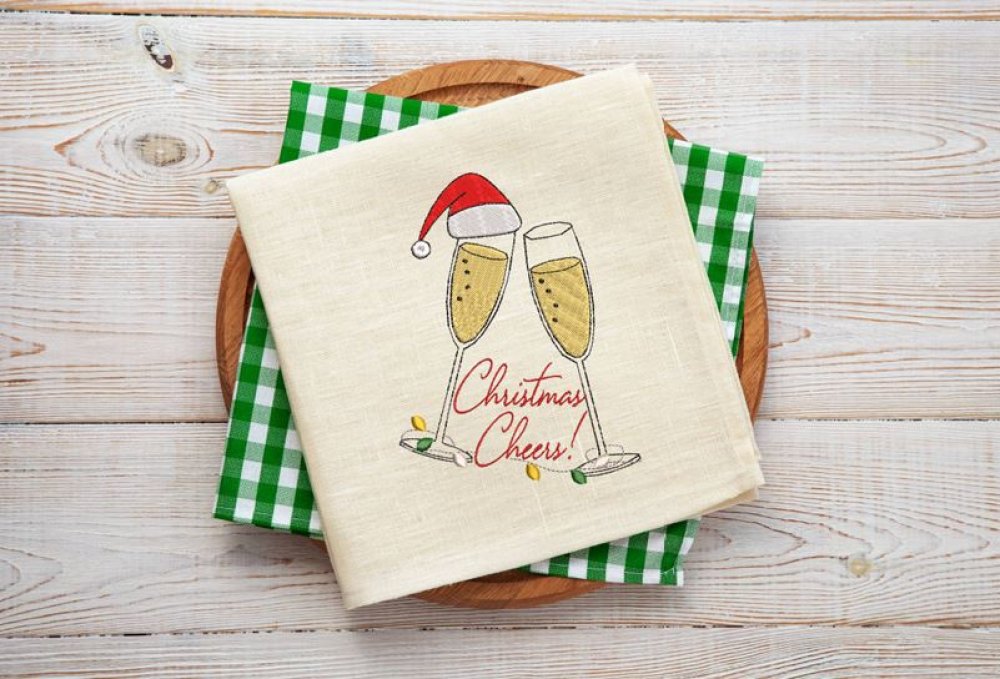 Design Coupes de champagne et bonnet de Noël en Fichier Numérique pour Broderie Machine