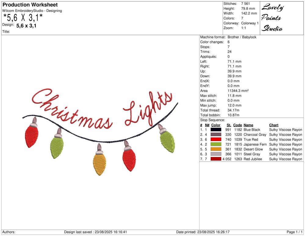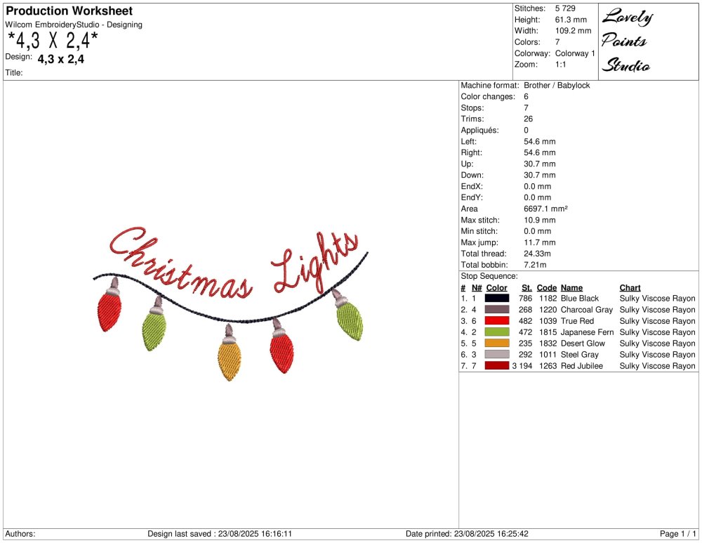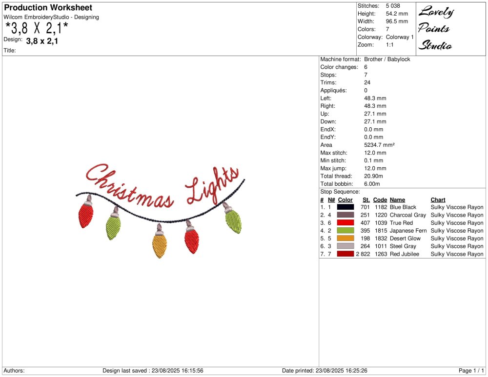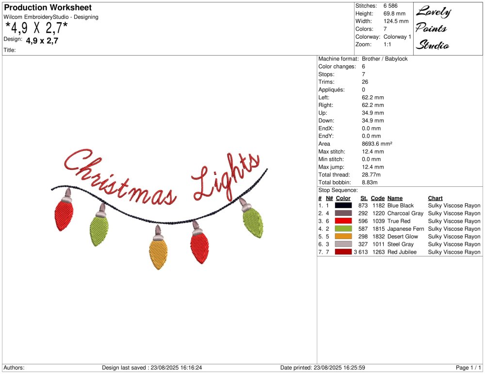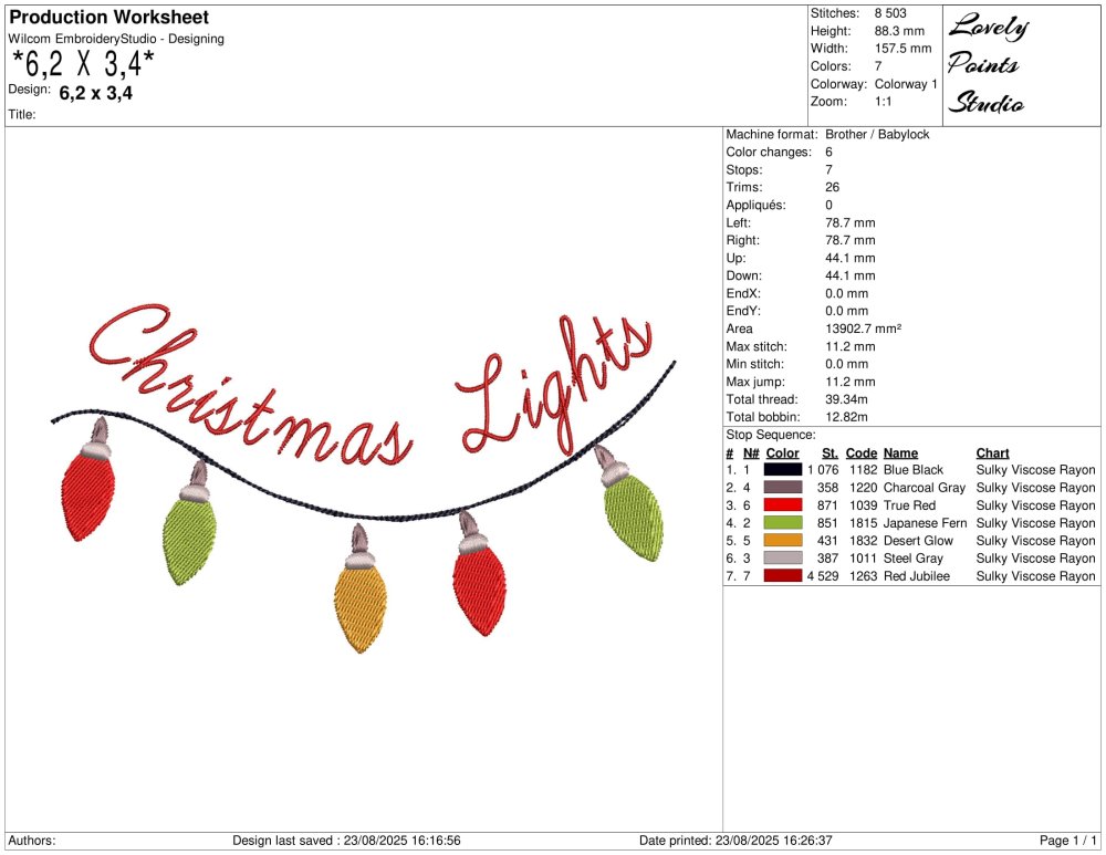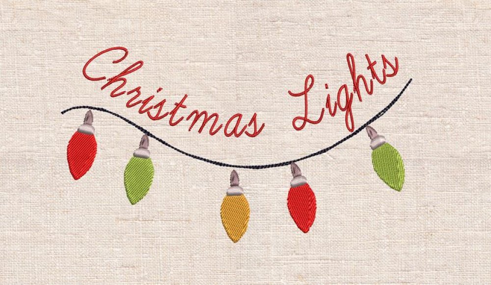 Motif guirlande de Noël avec lampes et Christmas Lights pour Machine à Broder disponible en 6 Tailles et Multi Formats.
