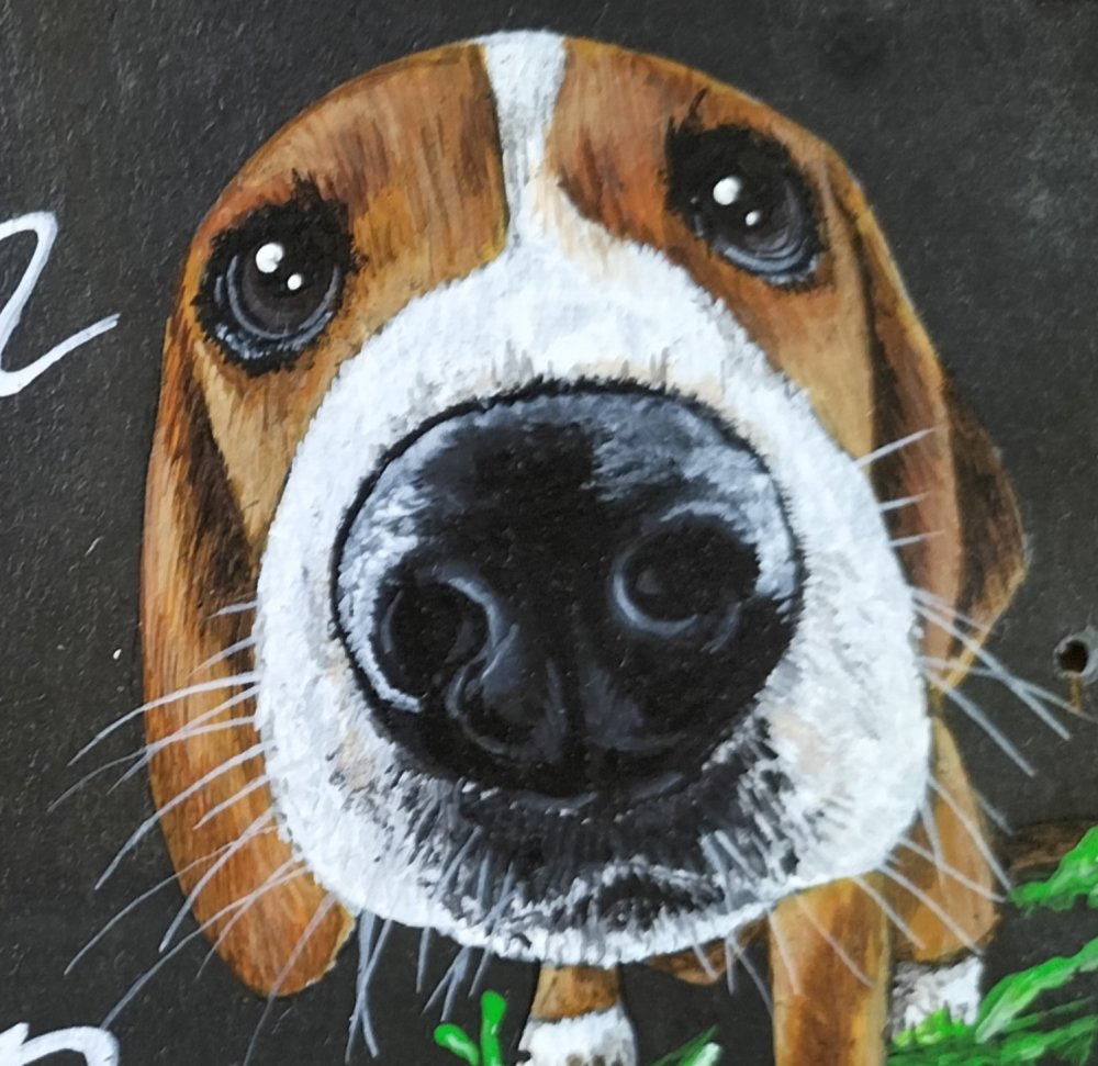 Peinture animalière sur ardoise très réaliste à la peinture acrylique, pour une décoration intérieur ou extérieur en plaque de maison, de porte ou de portail, avec un message plein de bonne humeur !