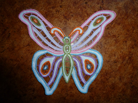 broderie applique le papillon multicolore mesure 20 cm /17 cm ,fine broderie en couleur sur une toile coton