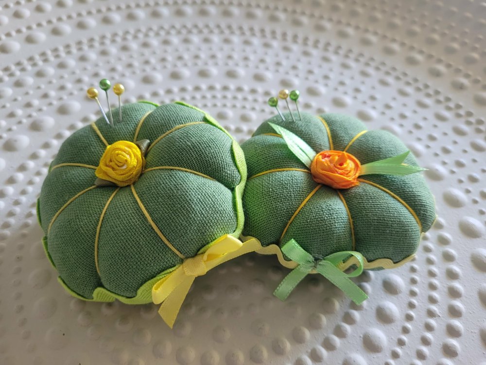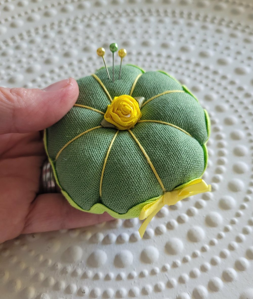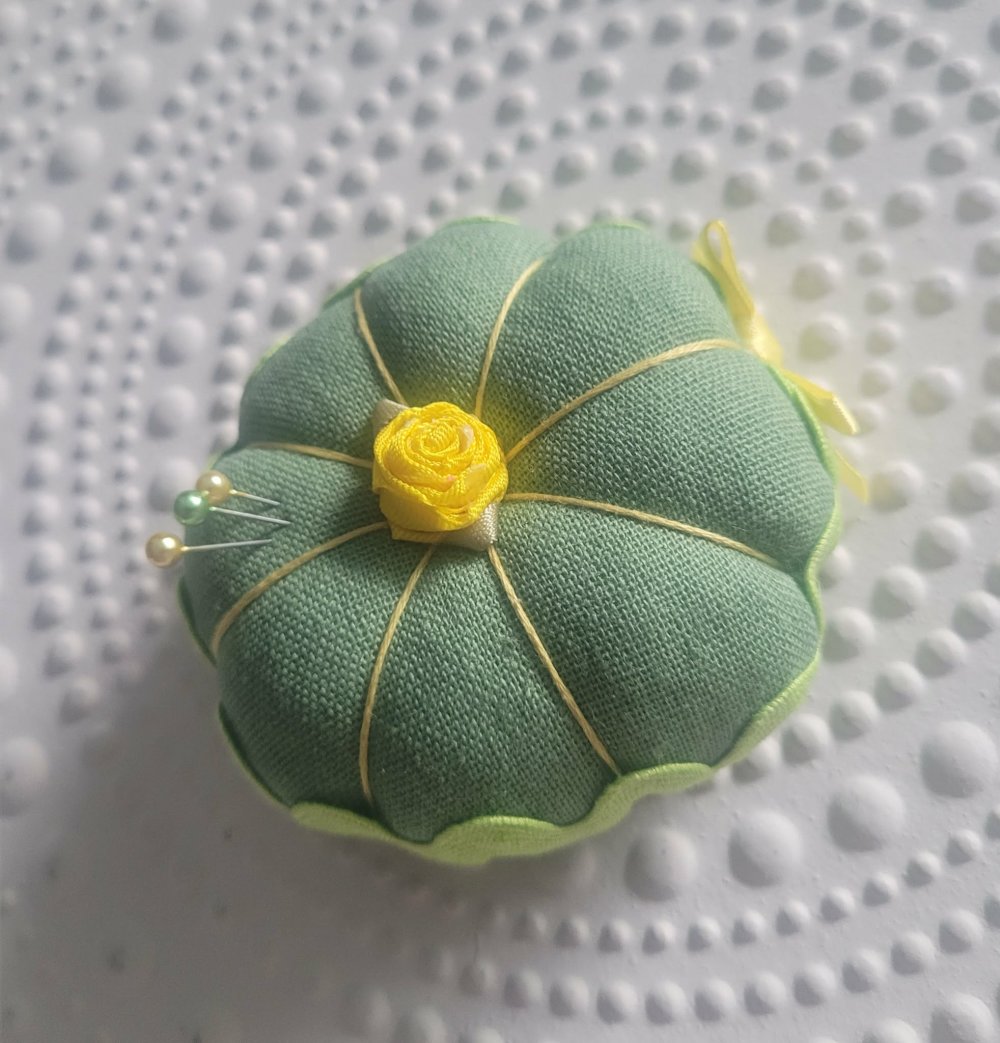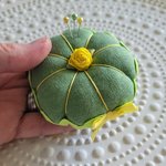 Pique épingles vert décoré ,joli et pratique il est votre allié pour vos travaux d'aiguille.