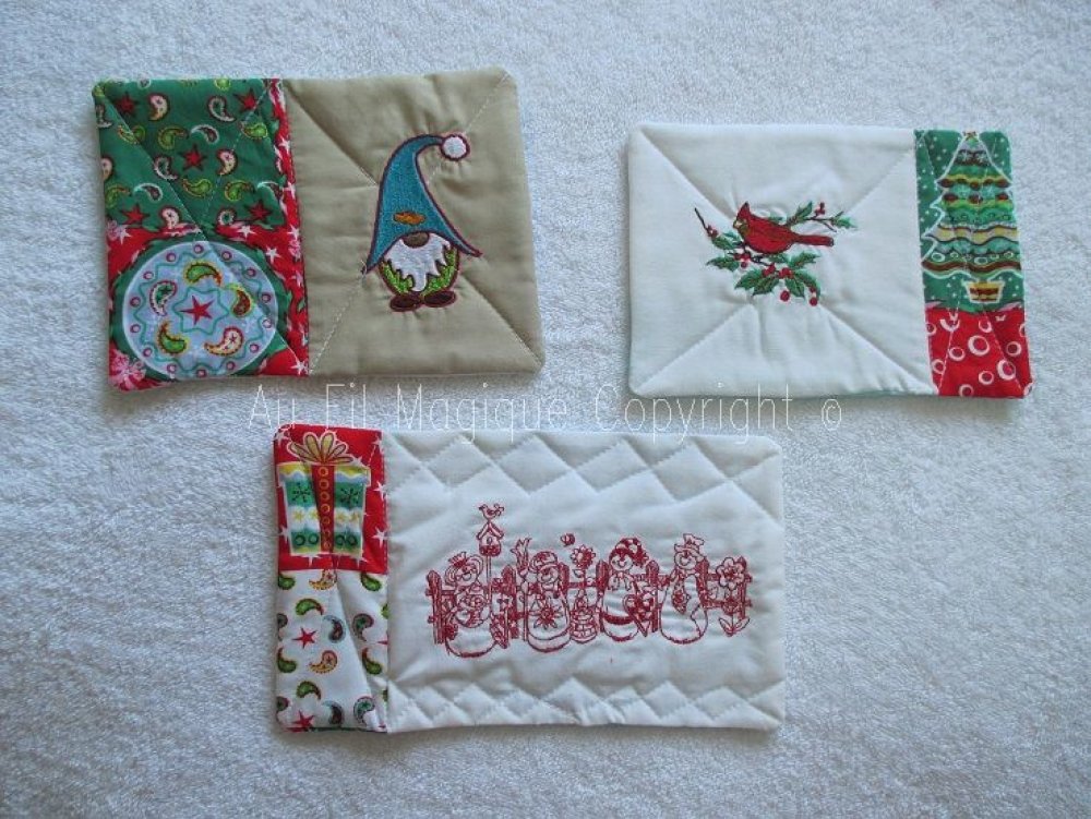 Ces petits tapis sont fabriqués en Tissu 100 % Coton, et brodés à la Machine à Broder, sur le thème de Noël,