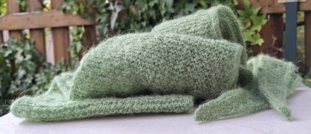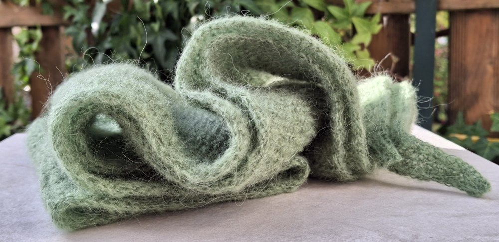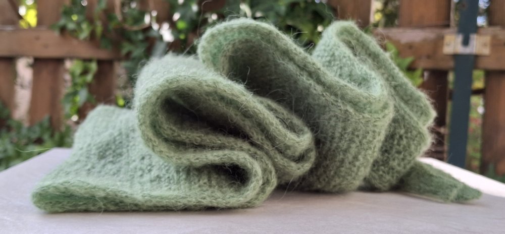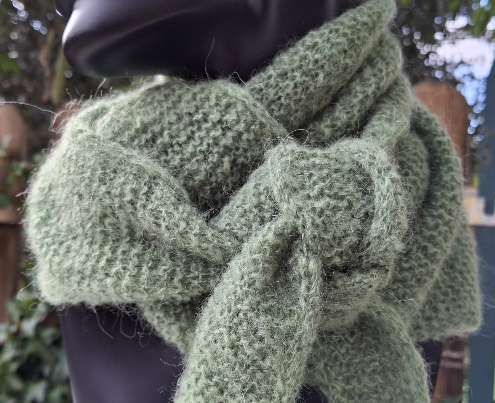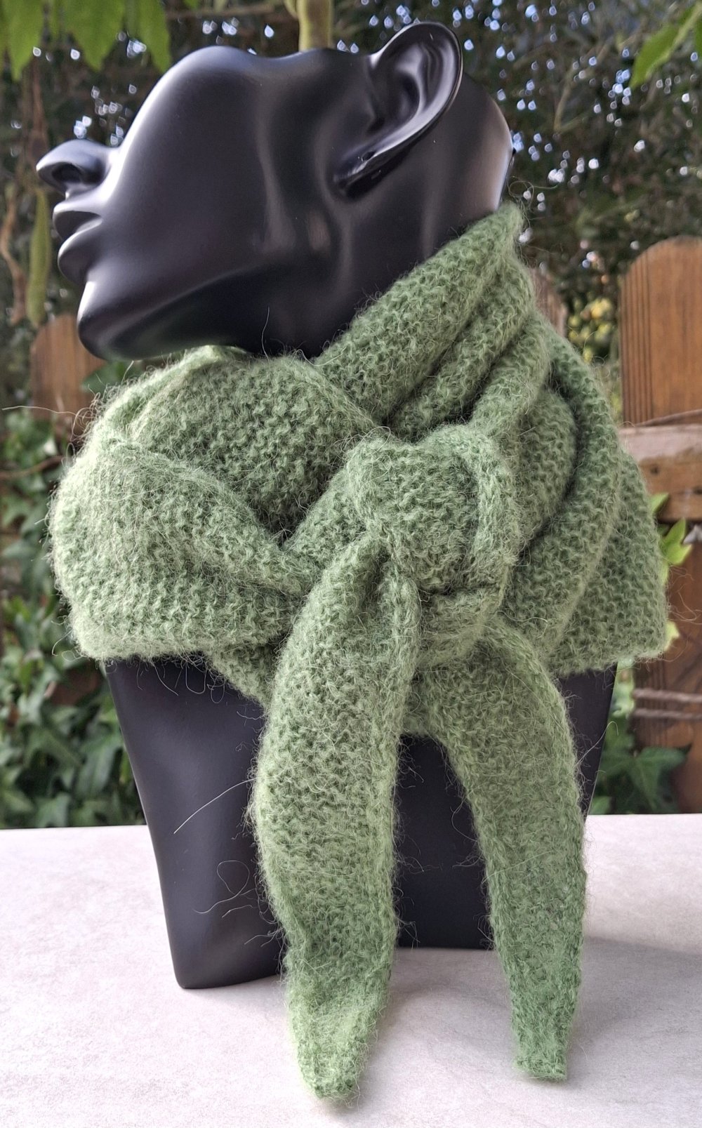 Echarpe/foulard laine mélange alpaga/acrylique, couleur vert amande