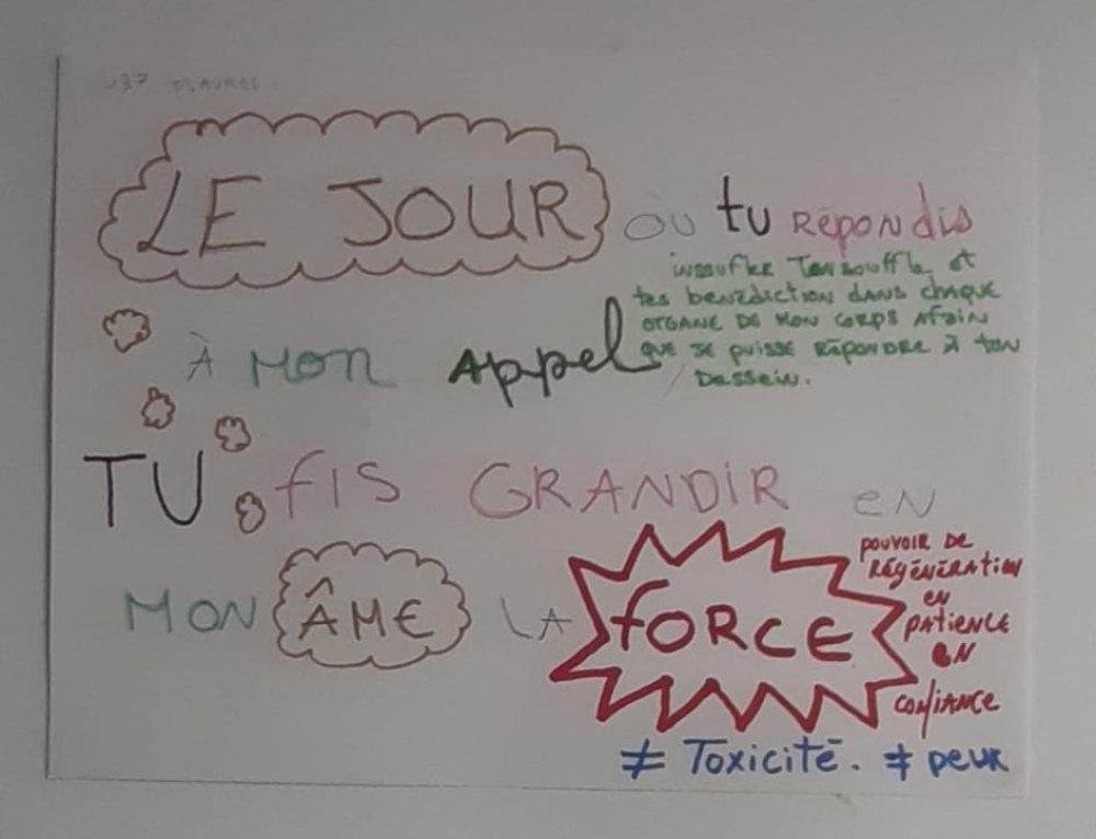 La chose importante ici sera que, par le biais de l'Art nous entrerons plus profondément dans une compréhension des textes et aurons à la fin de la séance un support qui nous permettra de faire mémoire et de revenir à ce que nous aurons goûté et expérimenté dans cette oraison.