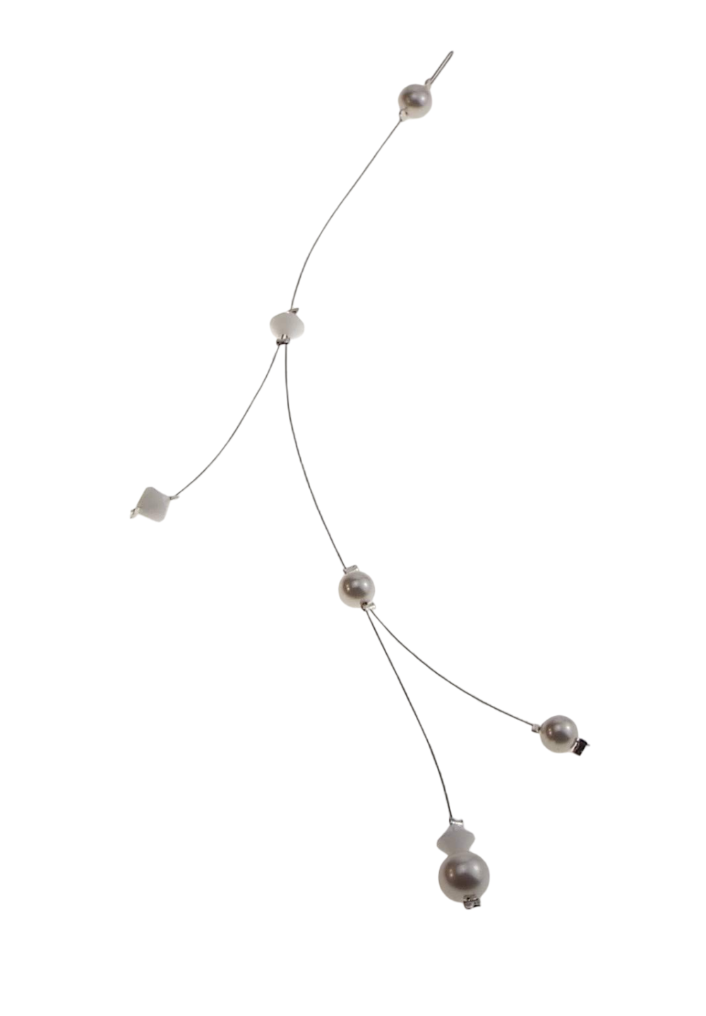Bijoux de dos goutte étincelle blanc n°1 . Bijoux mariage - Bijoux mariée Composé de rondes nacrés 6 et 8 mm et de toupies 6 mm en cristal autrichien, sur fil câblé argenté, sans nickel. Longueur 19 cm.