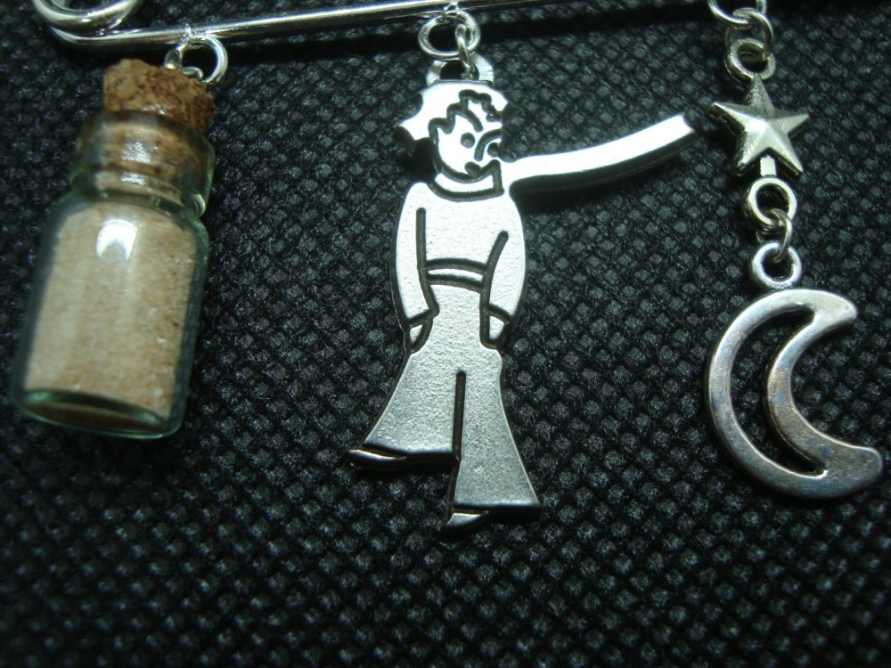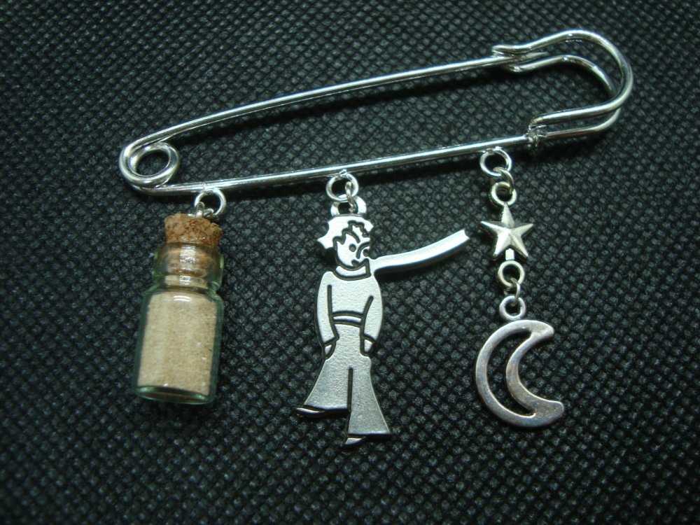 Broche "dessine moi un mouton" avec sable du désert de Mauritanie, lune et étoile