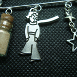 Composée de 3 breloques cette broche ornera avec douceur vos pulls ou écharpes d'hiver.
