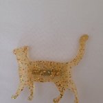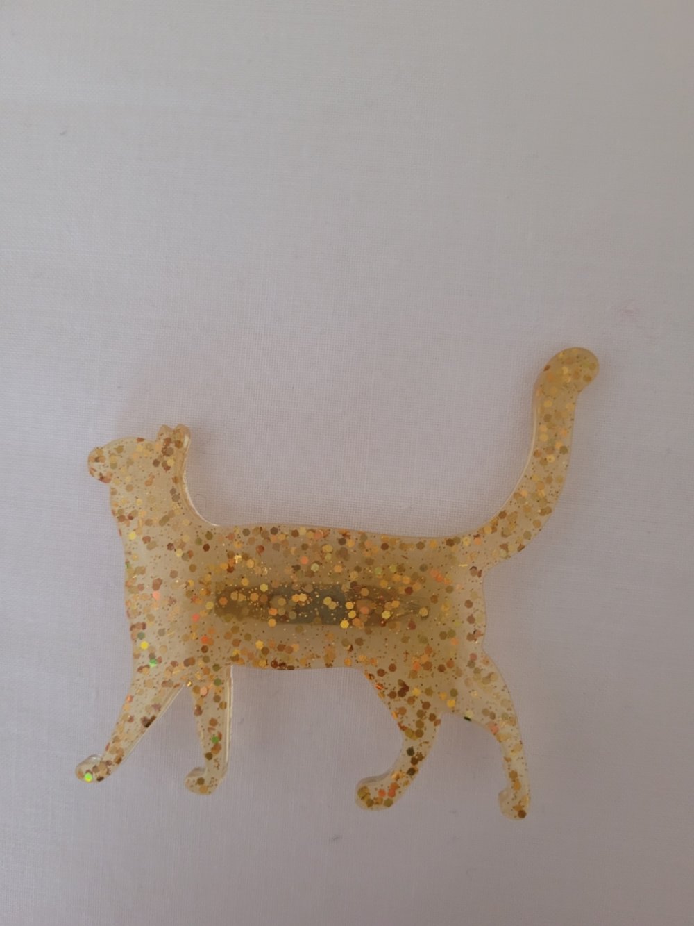 Broche chat en résine, jaune avec quelques paillettes