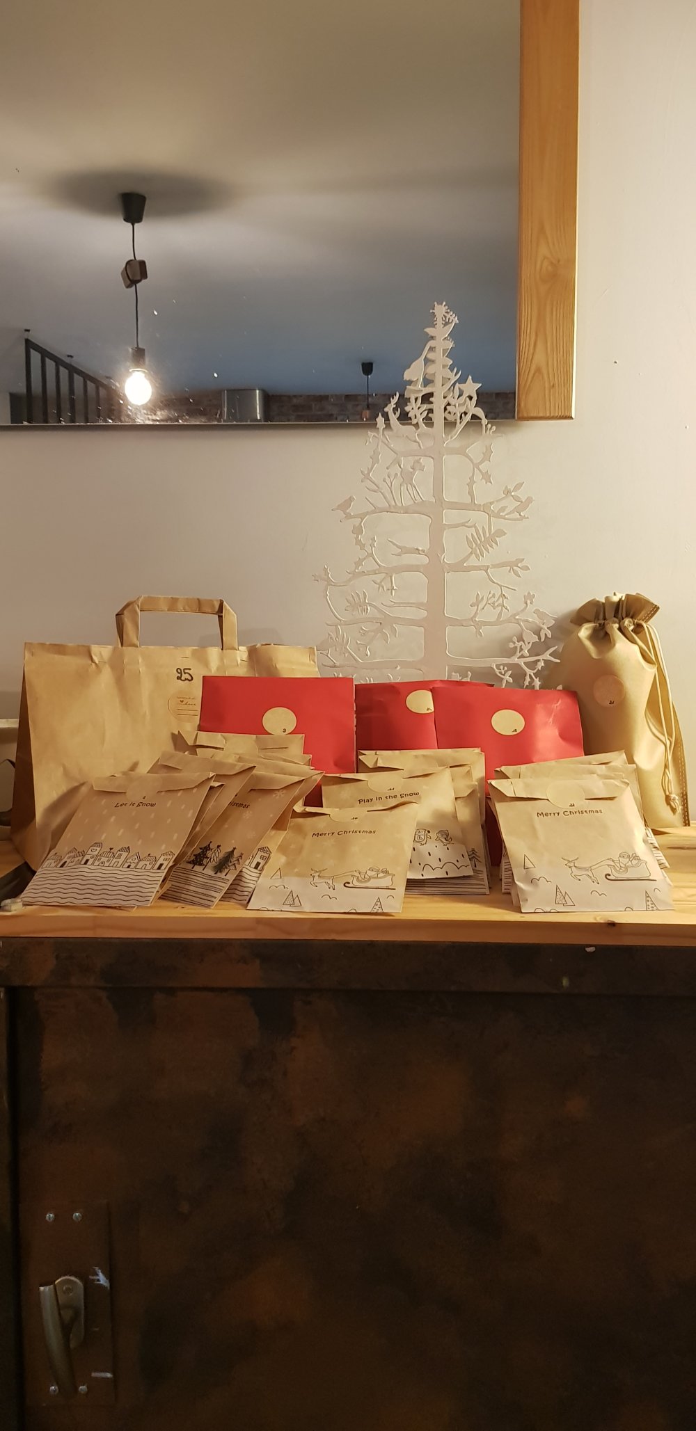Il contient des créations faites mains (bijoux, pochettes, accessoires...) ainsi que des gourmandises et autres surprises en lien avec Noël.