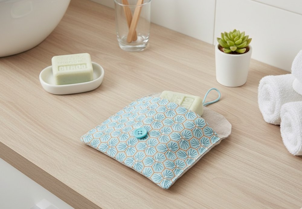 Pochette à savon tissus imprimé et enduit beige