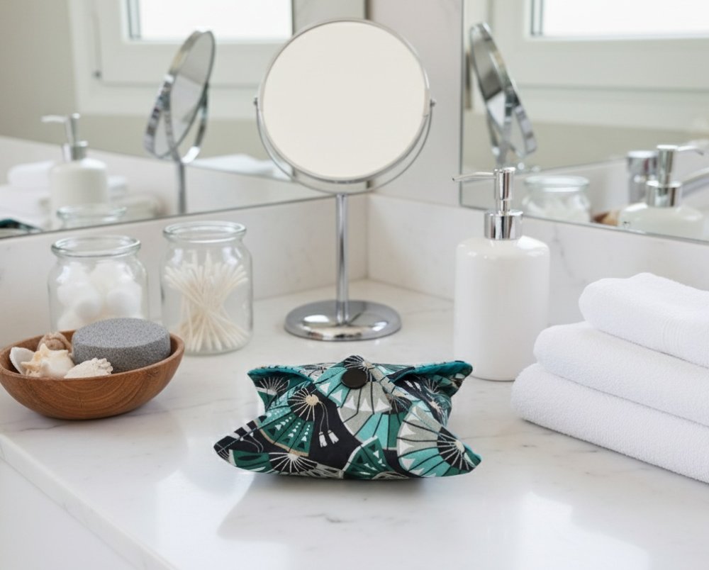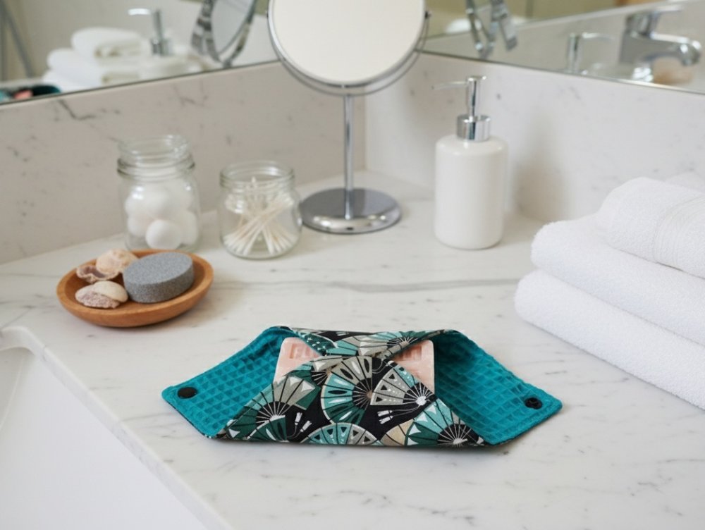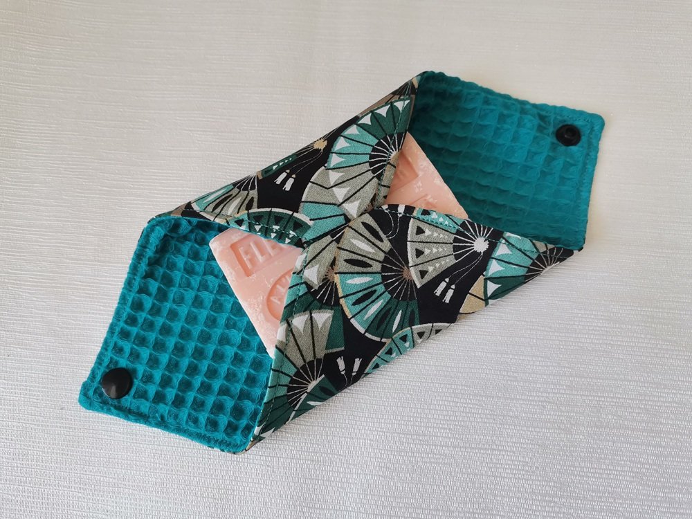 Pochette à savon tissus imprimé et doublée nid d'abeilles