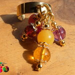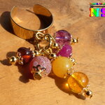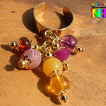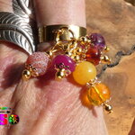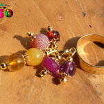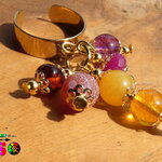 Les pierres utilisées pour réaliser ce modèle unique : citrine jaune, jade des montagne fuchsia, jades des montagnes jaune tournesol, rubis facetté rouge rose, agate veine de dragon volcano, résine végétale cognac de la mer Baltique.