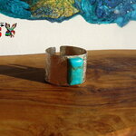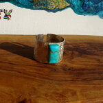 J'ai fabriqué intégralement la bague à partir d'une plaque d'argent de 0.7 mm d'épaisseur ("0.02) façonnée à la main puis martelée. J'ai ensuite fixé une superbe turquoise sleeping beauty bleu turquoise. Le bijou est poinçonné.