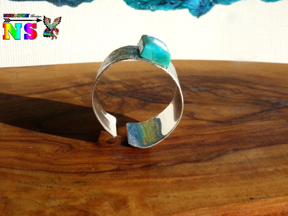 Bague ajustable anneau large argent sterling - Bague Turquoise Sleeping Beauty - Alliance artisanale fait main - Bijou précieux argent