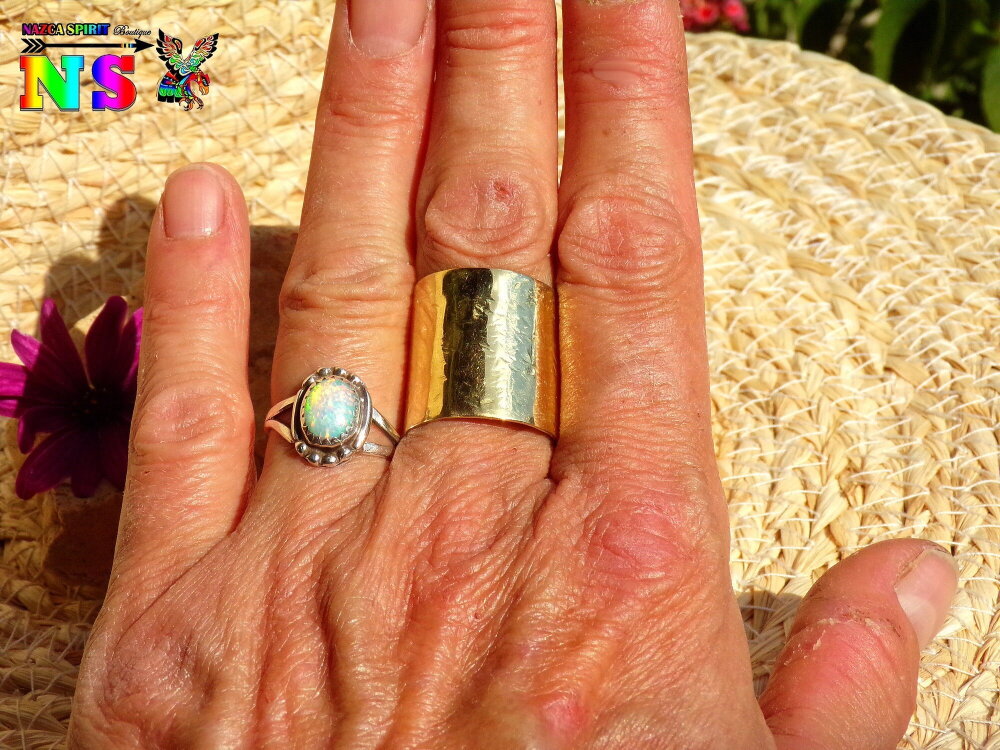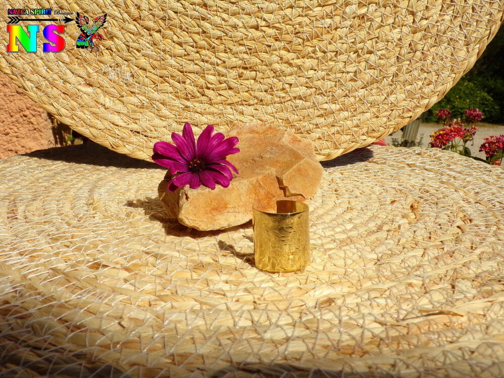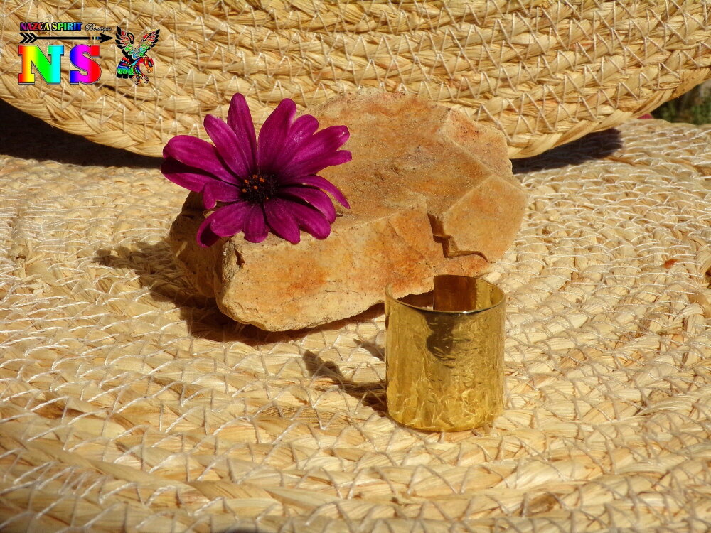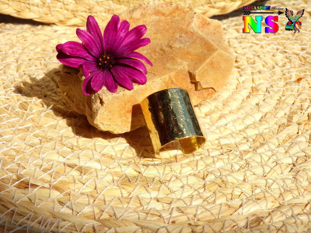 Bague Esclave Jonc Réglable en Laiton Doré Martelé - Anneau Fait Main - Bijou Artisanal Création Unique - Anneau Large Or Brillant